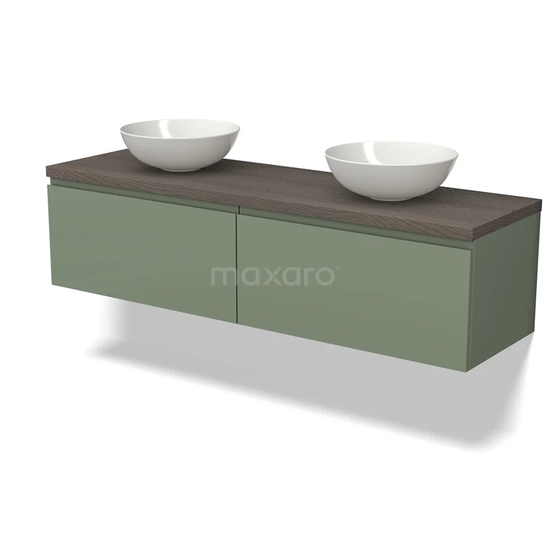 Modulo Plato Badmöbel mit Aufsatzwaschbecken | 160 cm Salbeigrün Grifflos front Dunkelbraune Eiche blatt 2 nebeneinanderliegende Schubladen