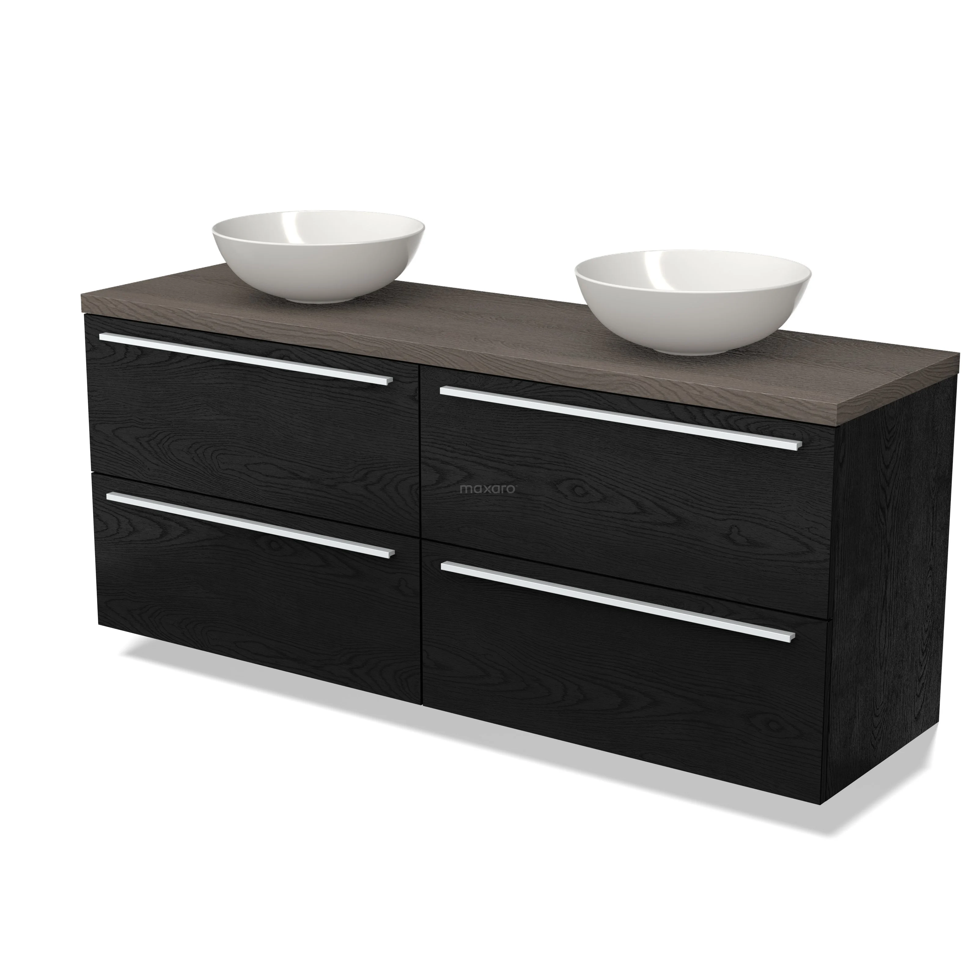 Modulo Plato Badmöbel mit Aufsatzwaschbecken | 160 cm Schwarze Eiche Flach front Dunkelbraune Eiche blatt 4 Schubladen