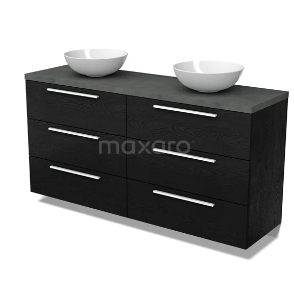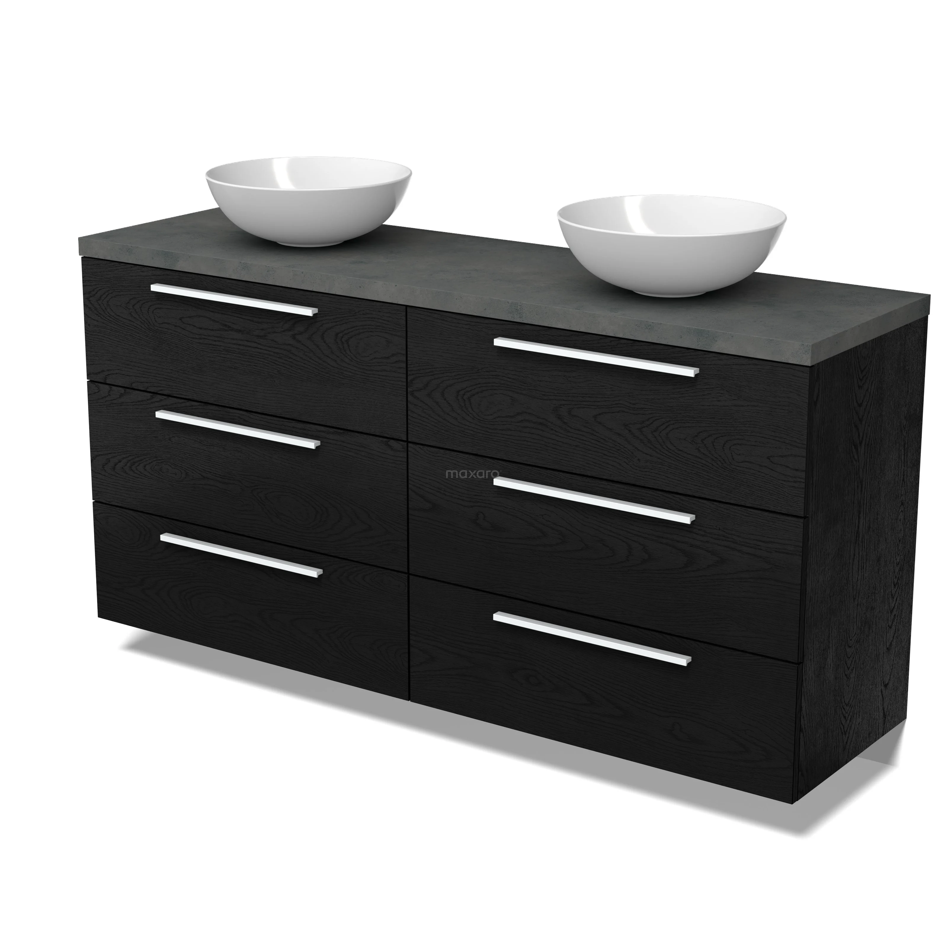 Modulo Plato Badmöbel mit Aufsatzwaschbecken | 160 cm Schwarze Eiche Flach front Dunkelgrauer Beton blatt 6 Schubladen
