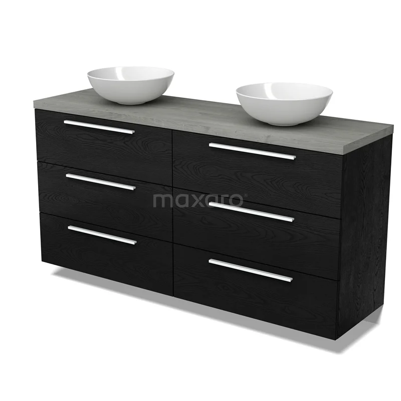 Modulo Plato Badmöbel mit Aufsatzwaschbecken | 160 cm Schwarze Eiche Flach front Graue Eiche blatt 6 Schubladen