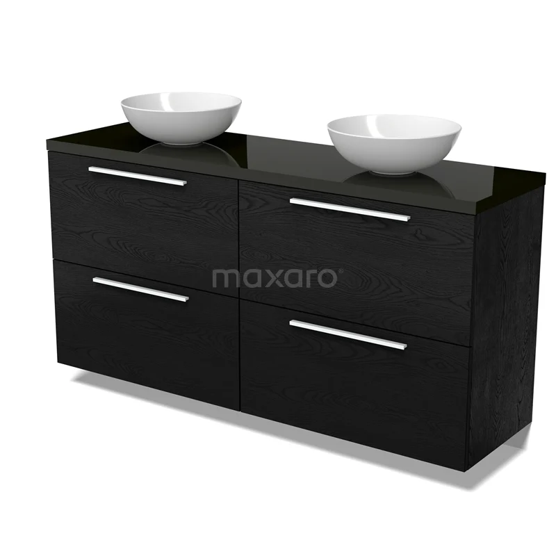 Modulo Plato Badmöbel mit Aufsatzwaschbecken | 160 cm Schwarze Eiche Flach front Hochglanz Schwarz blatt 4 hohe Schubladen