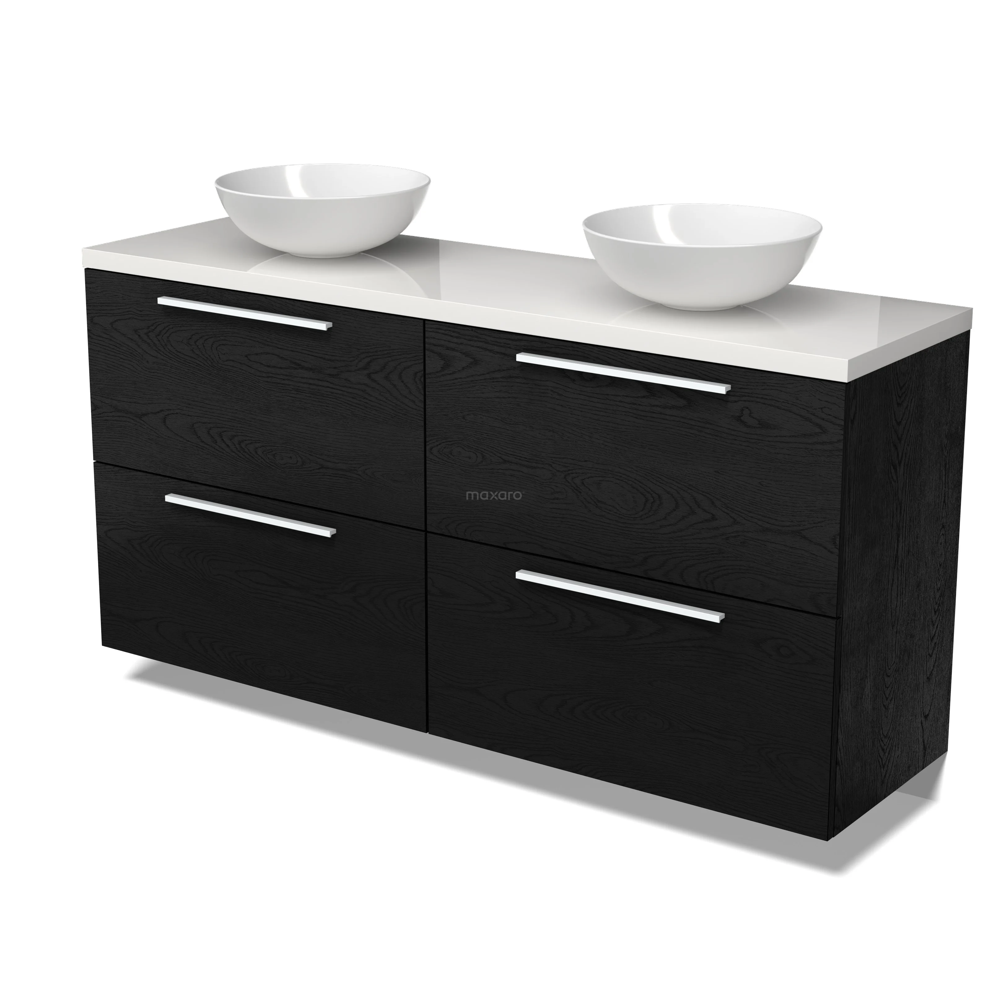Modulo Plato Badmöbel mit Aufsatzwaschbecken | 160 cm Schwarze Eiche Flach front Hochglanz Weiß blatt 4 hohe Schubladen