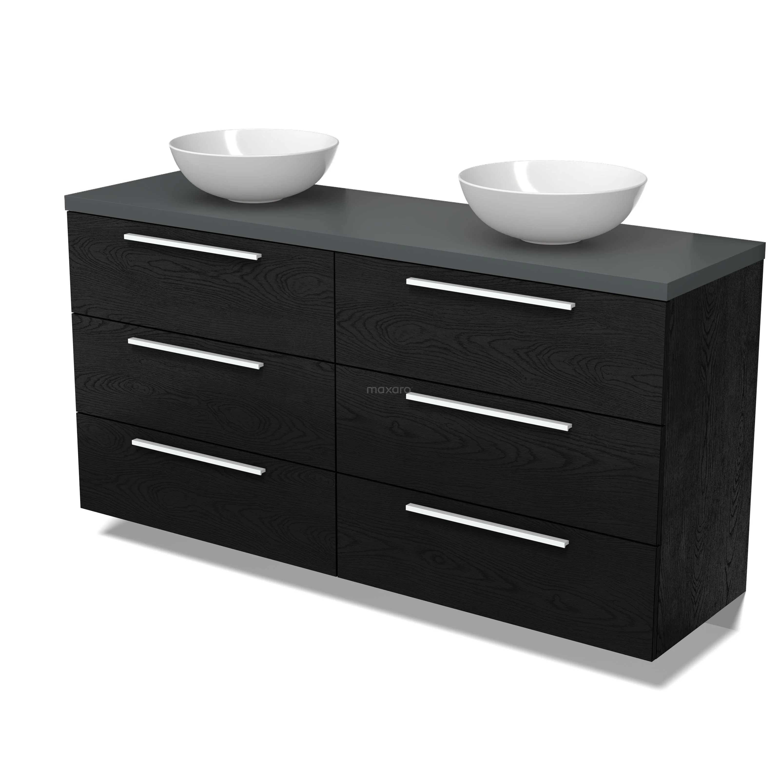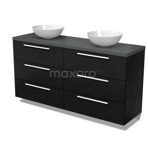 Modulo Plato Badmöbel mit Aufsatzwaschbecken | 160 cm Schwarze Eiche Flach front Mittelgrau blatt 6 Schubladen