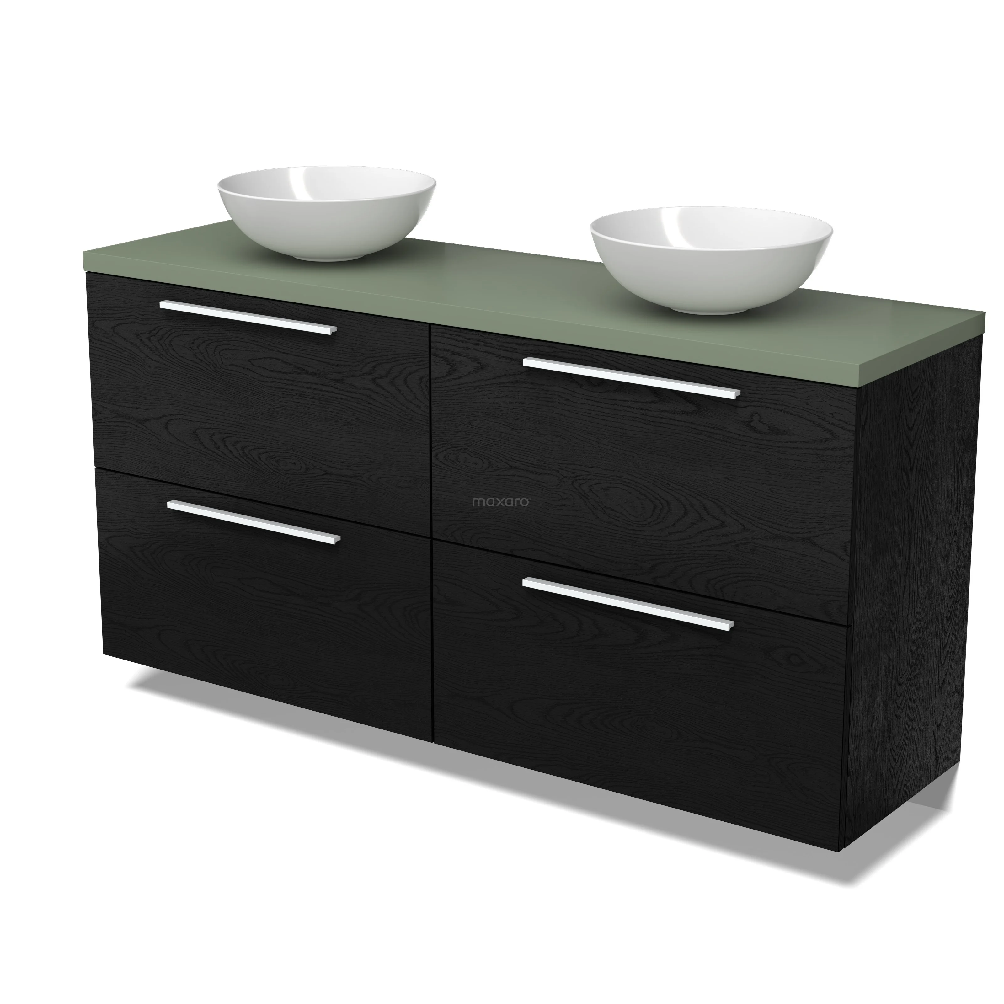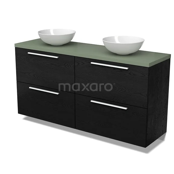 Modulo Plato Badmöbel mit Aufsatzwaschbecken | 160 cm Schwarze Eiche Flach front Salbeigrün blatt 4 hohe Schubladen