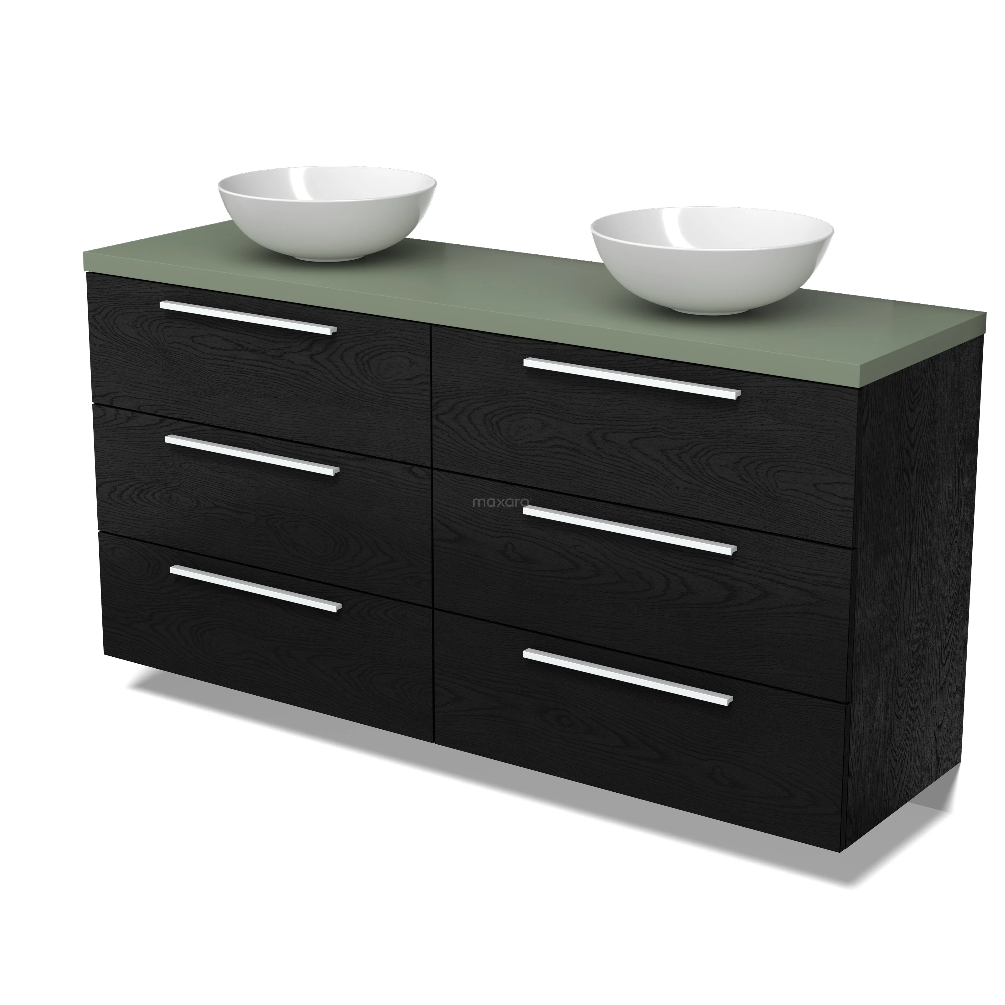 Modulo Plato Badmöbel mit Aufsatzwaschbecken | 160 cm Schwarze Eiche Flach front Salbeigrün blatt 6 Schubladen