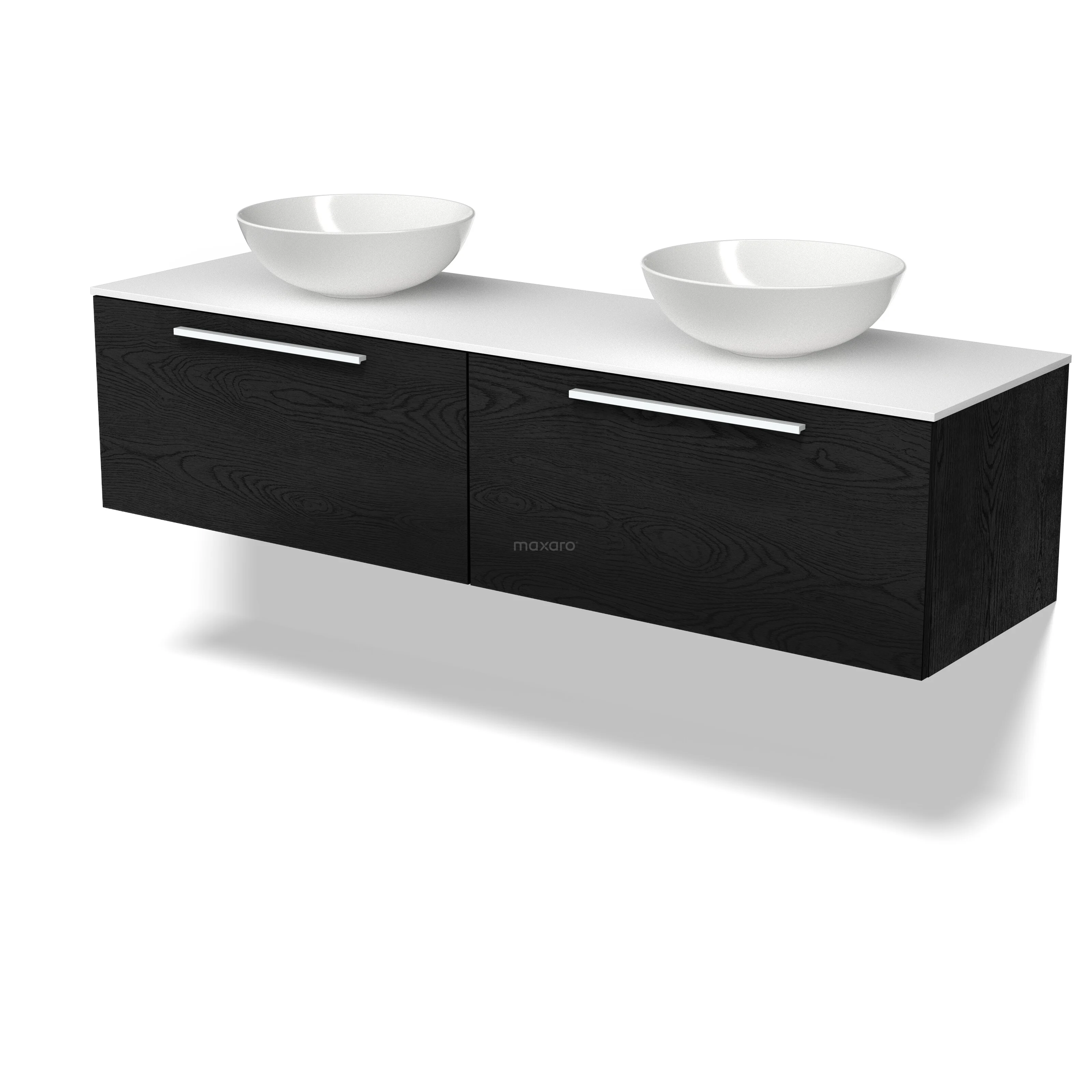 Modulo Plato Badmöbel mit Aufsatzwaschbecken | 160 cm Schwarze Eiche Flach front Solid Surface blatt 2 nebeneinanderliegende Schubladen