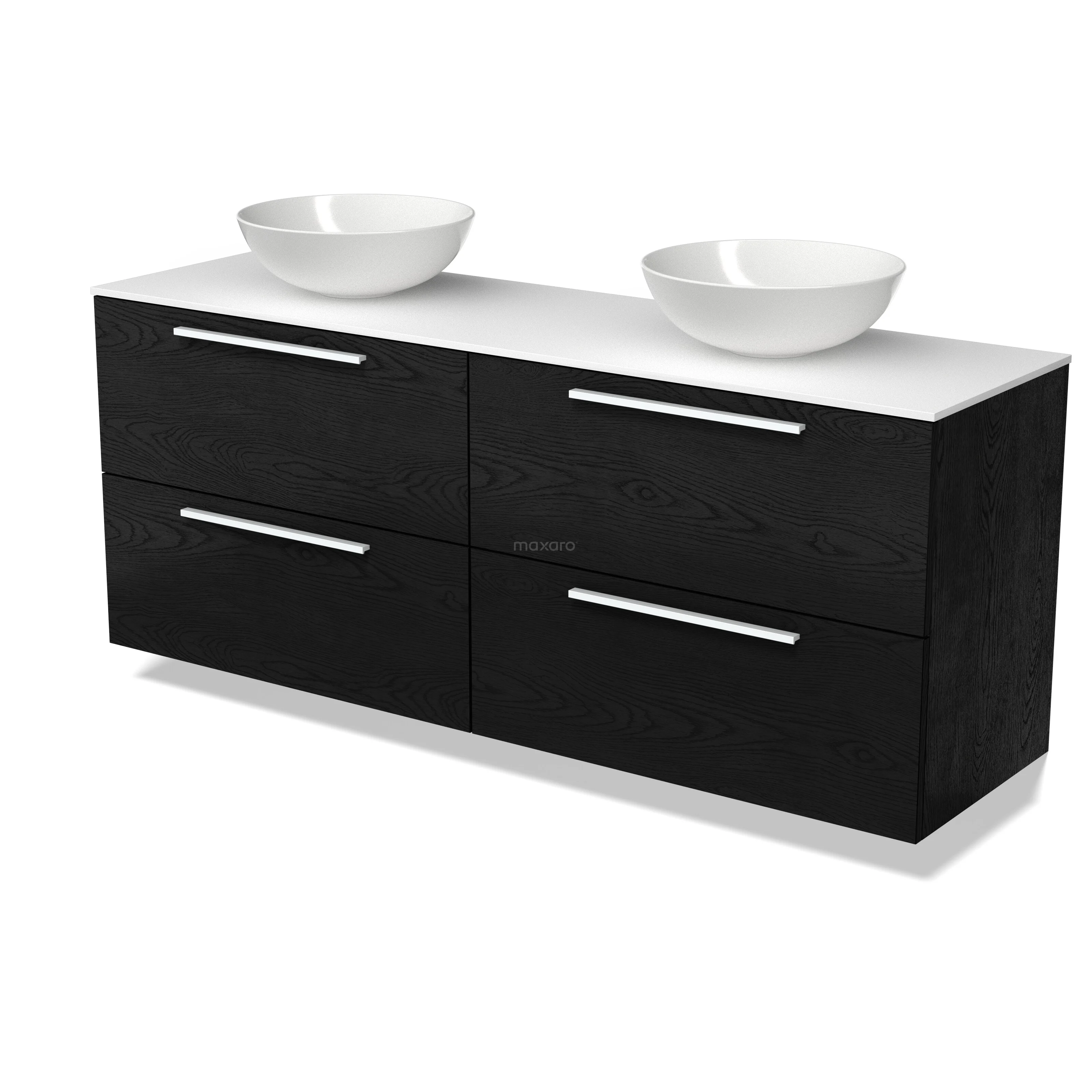 Modulo Plato Badmöbel mit Aufsatzwaschbecken | 160 cm Schwarze Eiche Flach front Solid Surface blatt 4 Schubladen