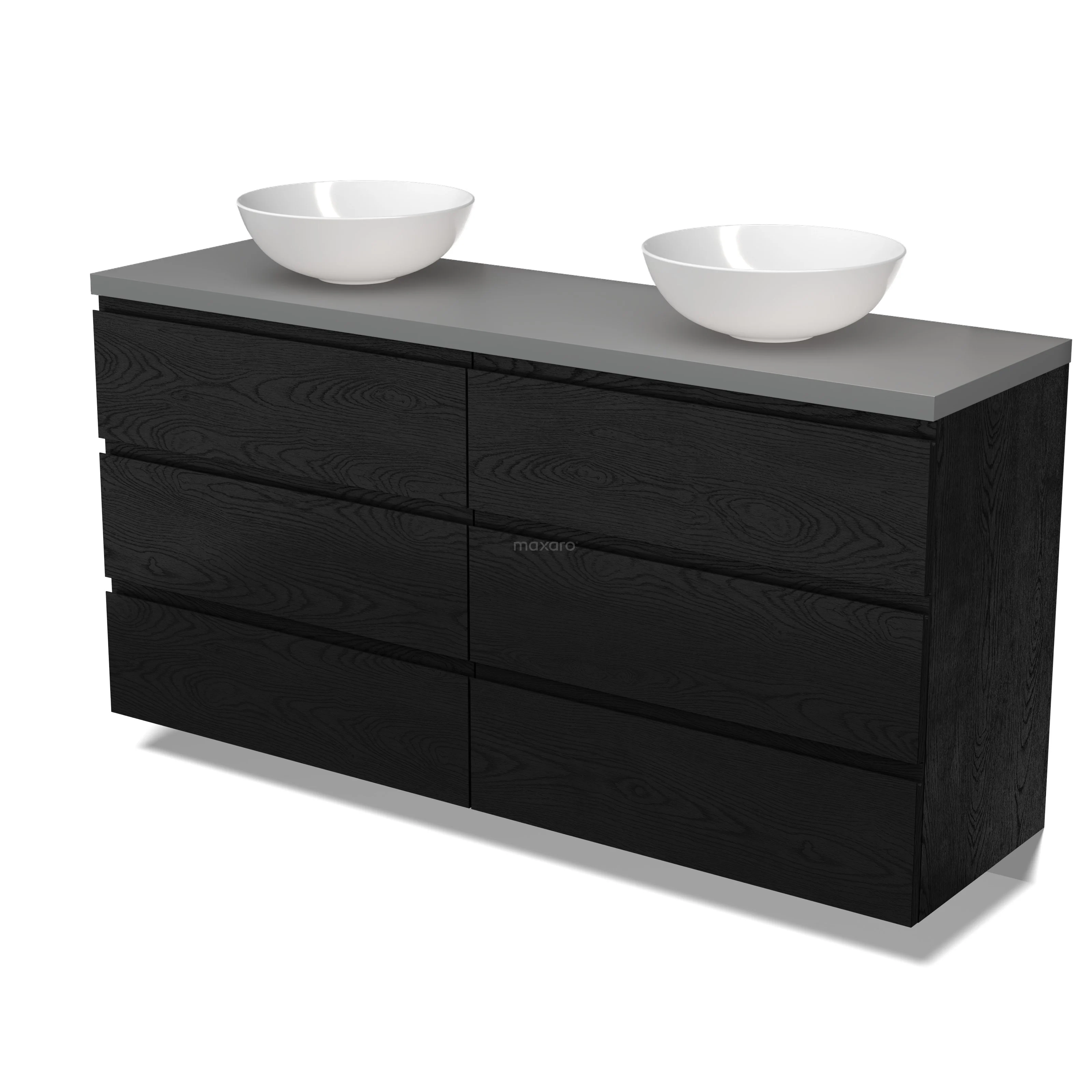 Modulo Plato Badmöbel mit Aufsatzwaschbecken | 160 cm Schwarze Eiche Grifflos front Dunkelgrau blatt 6 Schubladen
