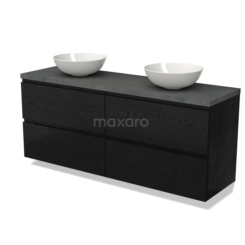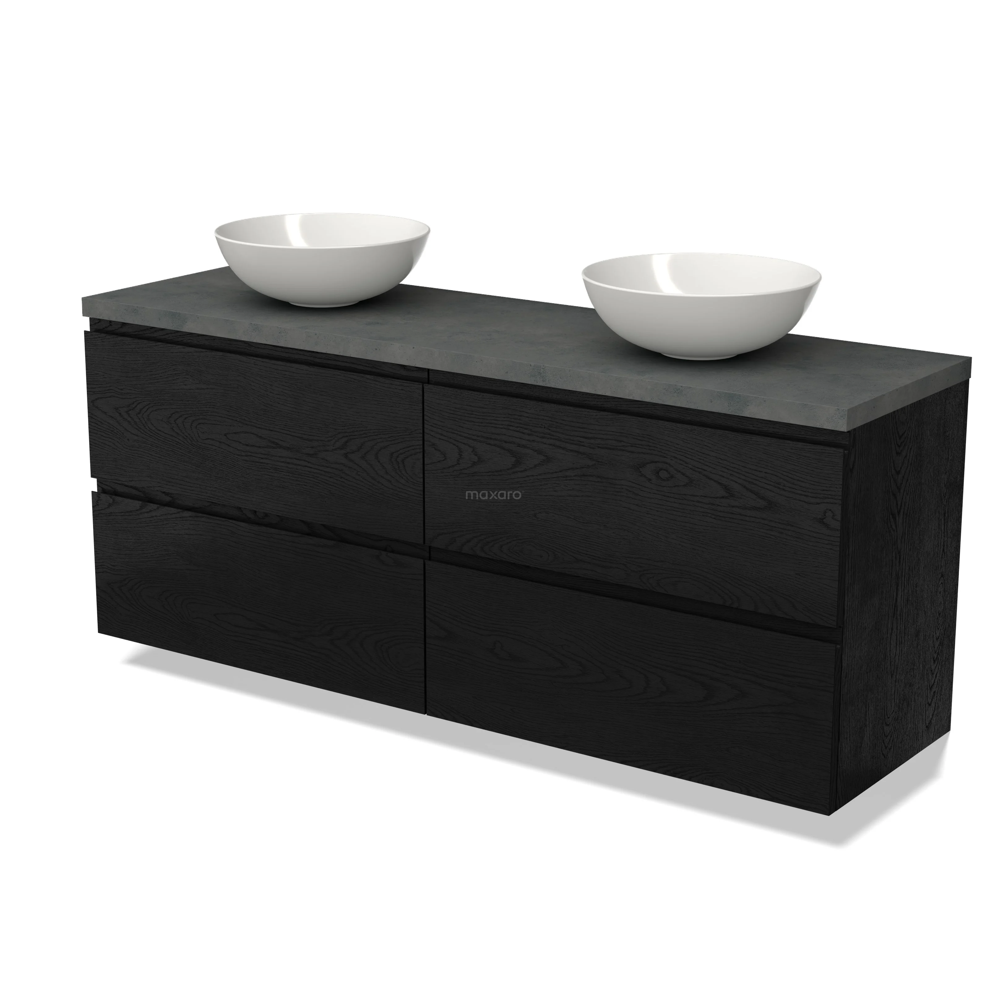 Modulo Plato Badmöbel mit Aufsatzwaschbecken | 160 cm Schwarze Eiche Grifflos front Dunkelgrauer Beton blatt 4 Schubladen