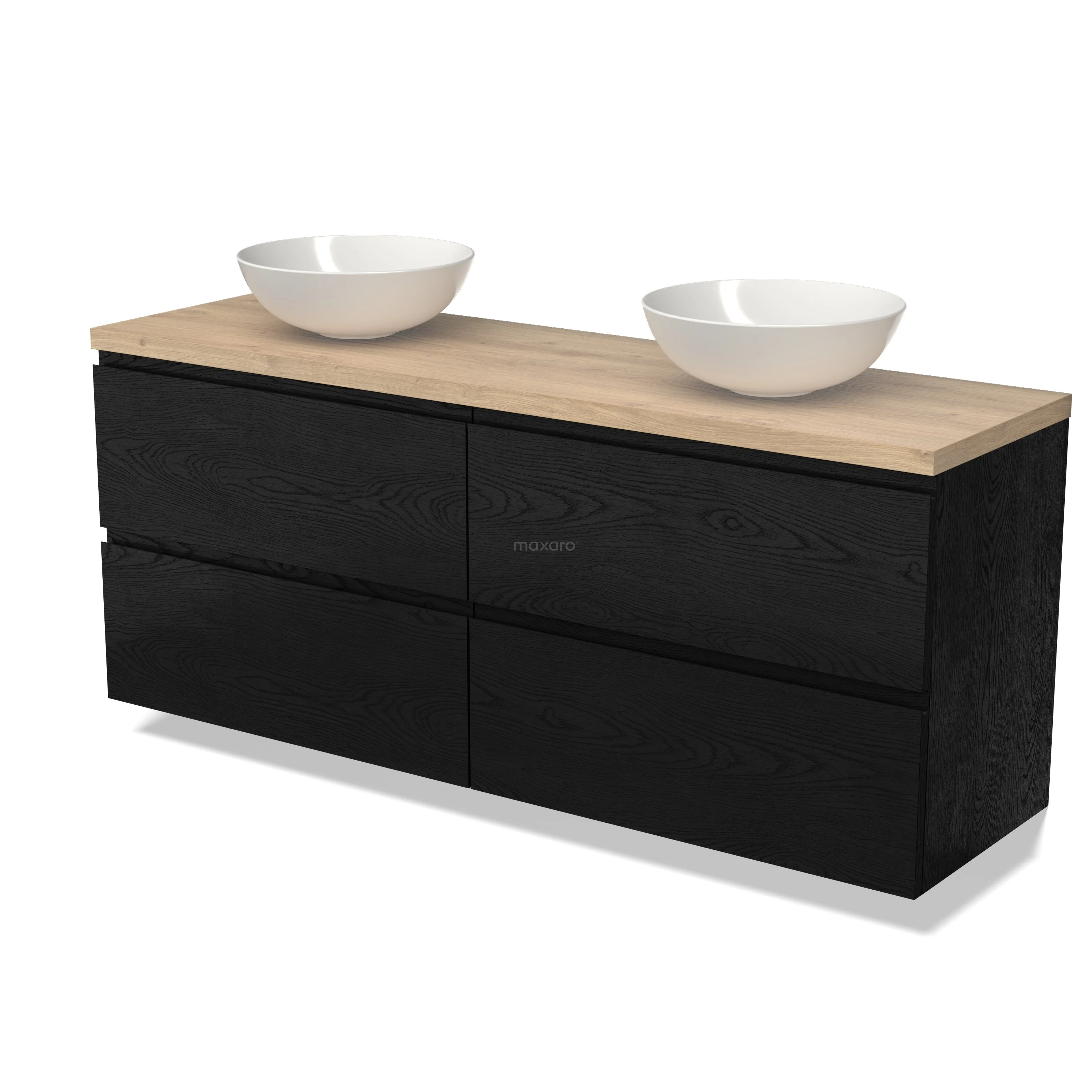 Modulo Plato Badmöbel mit Aufsatzwaschbecken | 160 cm Schwarze Eiche Grifflos front Hellbraune Eiche blatt 4 Schubladen