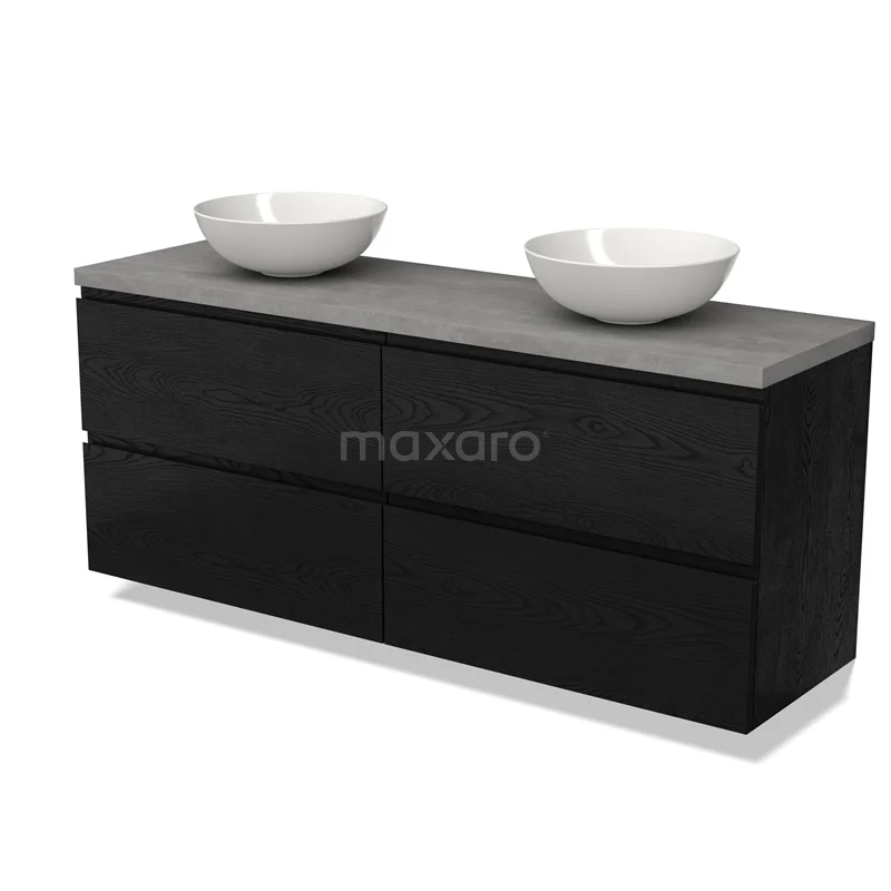 Modulo Plato Badmöbel mit Aufsatzwaschbecken | 160 cm Schwarze Eiche Grifflos front Hellgrauer Beton blatt 4 Schubladen