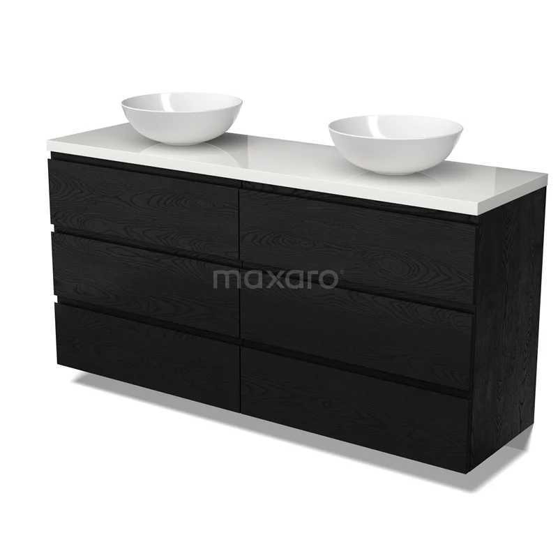 Modulo Plato Badmöbel mit Aufsatzwaschbecken | 160 cm Schwarze Eiche Grifflos front Hochglanz Weiß blatt 6 Schubladen BMK20-00317
