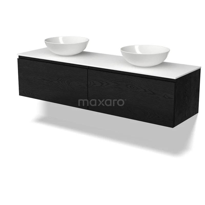 Modulo Plato Badmöbel mit Aufsatzwaschbecken | 160 cm Schwarze Eiche Grifflos front Solid Surface blatt 2 nebeneinanderliegende Schubladen