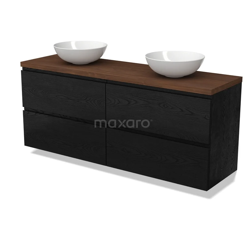 Modulo Plato Badmöbel mit Aufsatzwaschbecken | 160 cm Schwarze Eiche Grifflos front Walnuss blatt 4 Schubladen