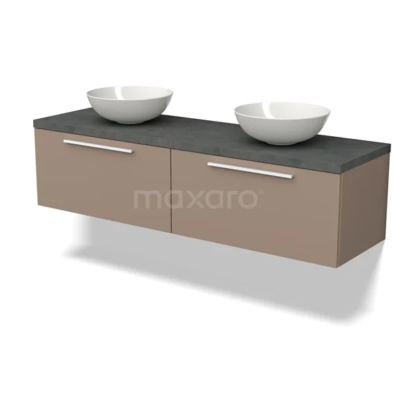 Modulo Plato Badmöbel mit Aufsatzwaschbecken | 160 cm Taupe Flach front Dunkelgrauer Beton blatt 2 nebeneinanderliegende Schubladen