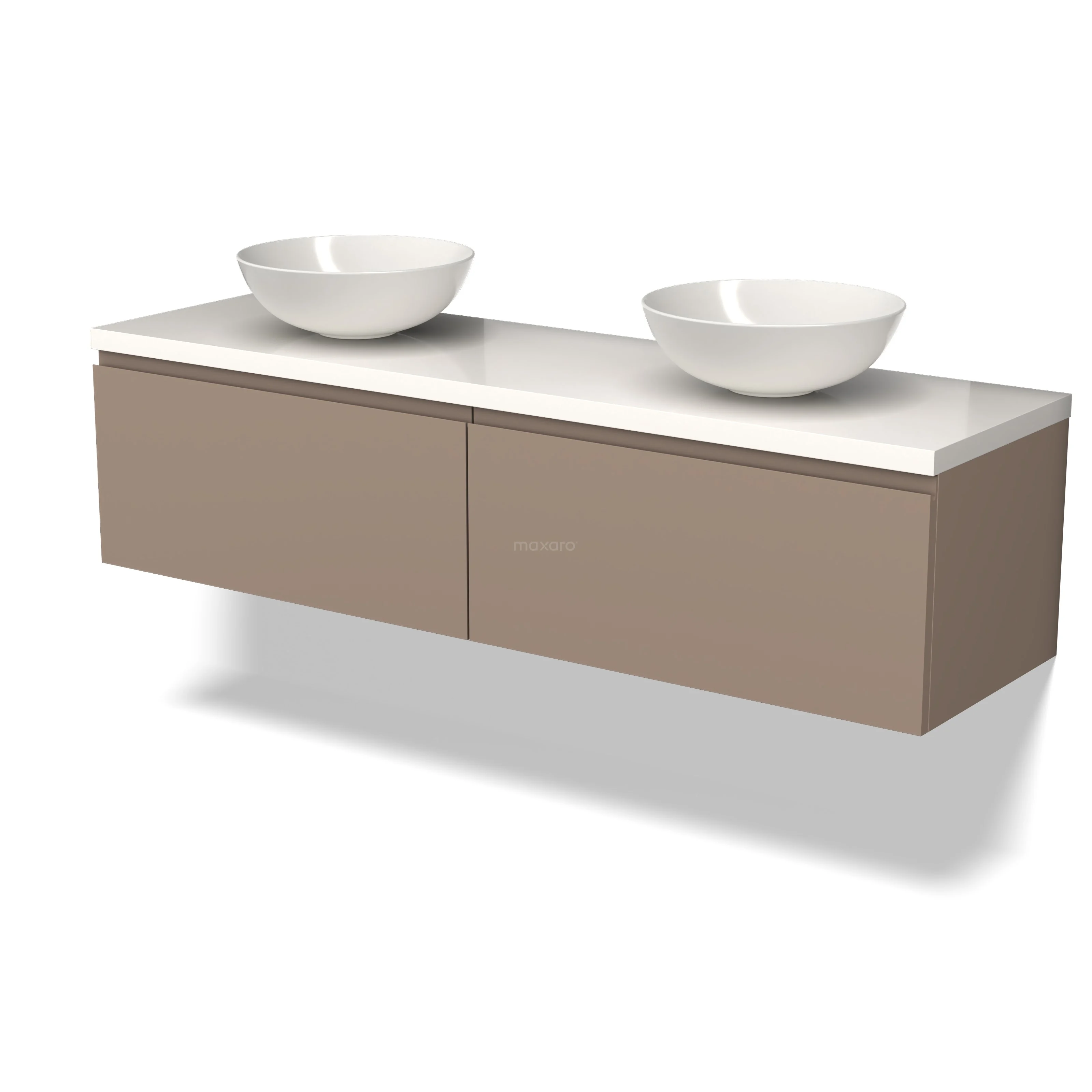 Modulo Plato Badmöbel mit Aufsatzwaschbecken | 160 cm Taupe Grifflos front Hochglanz Weiß blatt 2 nebeneinanderliegende Schubladen