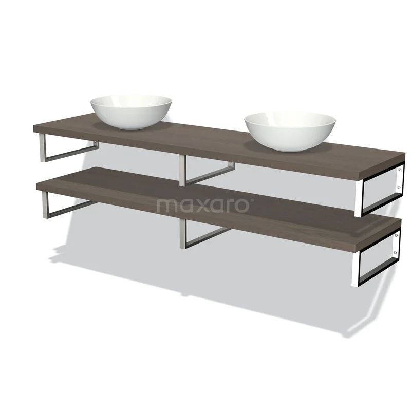 Modulo Plato Badmöbel mit Aufsatzwaschbecken | 180 cm Dunkelbraune Eiche front Dunkelbraune Eiche blatt 2 Waschtischplatten