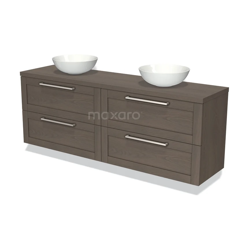 Modulo Plato Badmöbel mit Aufsatzwaschbecken | 180 cm Dunkelbraune Eiche Rahmen front Dunkelbraune Eiche blatt 4 Schubladen