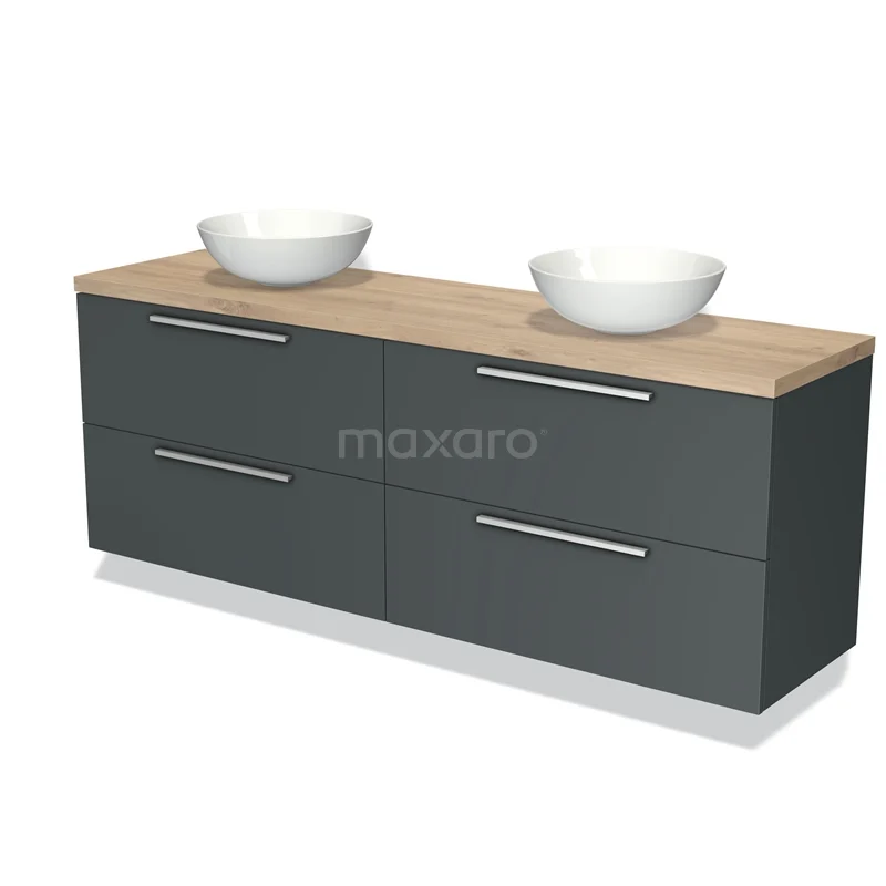 Modulo Plato Badmöbel mit Aufsatzwaschbecken | 180 cm Dunkelgrau Flach front Hellbraune Eiche blatt 4 Schubladen