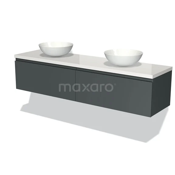 Modulo Plato Badmöbel mit Aufsatzwaschbecken | 180 cm Dunkelgrau Grifflos front Hochglanz Weiß blatt 2 nebeneinanderliegende Schubladen