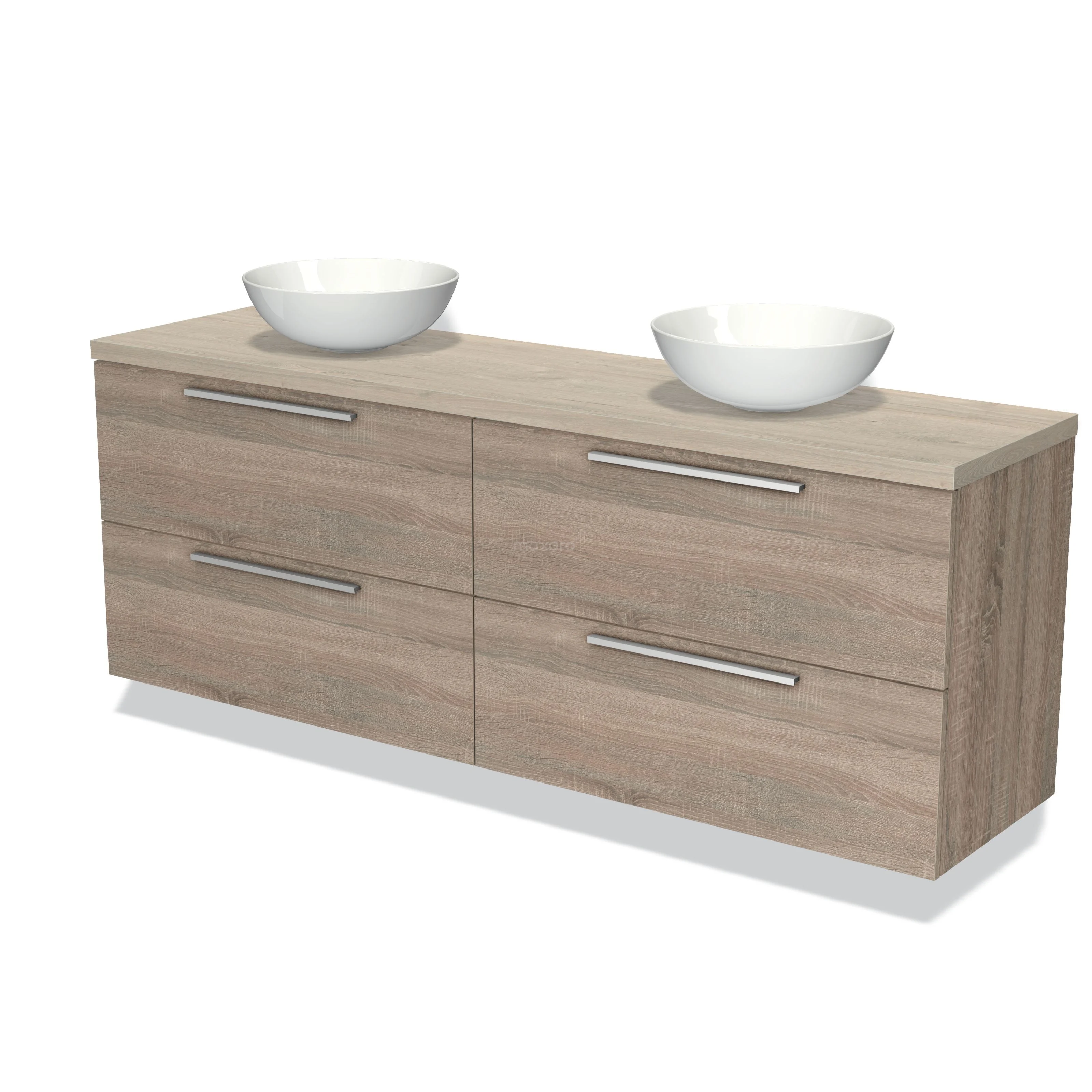 Modulo Plato Badmöbel mit Aufsatzwaschbecken | 180 cm Eiche Flach front Hellgraue Eiche blatt 4 Schubladen