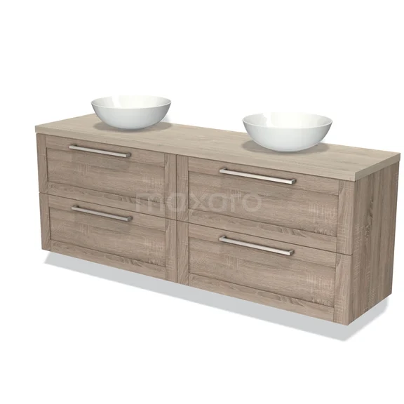 Modulo Plato Badmöbel mit Aufsatzwaschbecken | 180 cm Eiche Rahmen front Hellgraue Eiche blatt 4 Schubladen