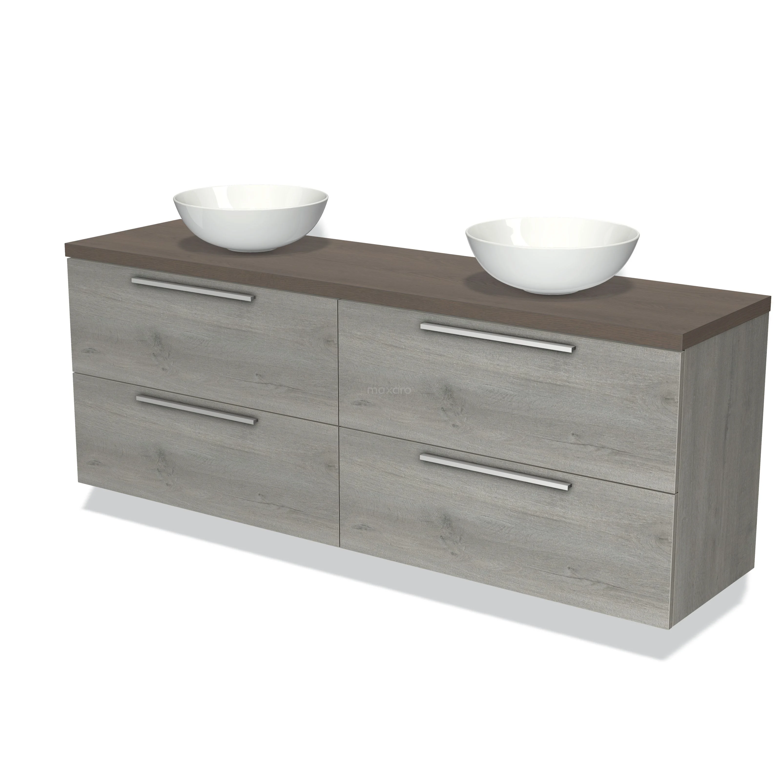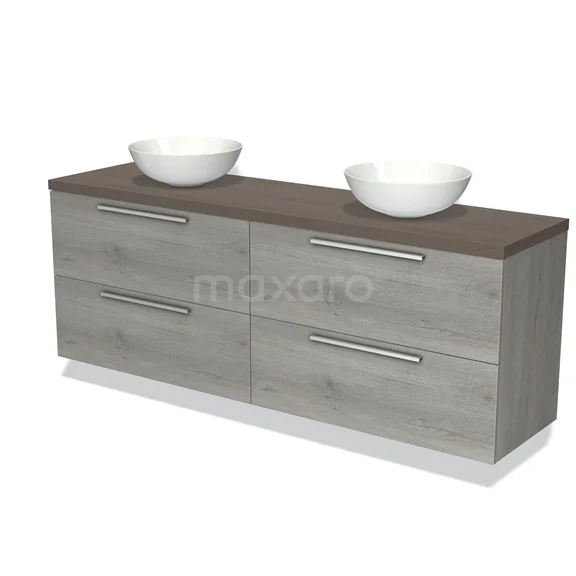Modulo Plato Badmöbel mit Aufsatzwaschbecken | 180 cm Graue Eiche Flach front Dunkelbraune Eiche blatt 4 Schubladen