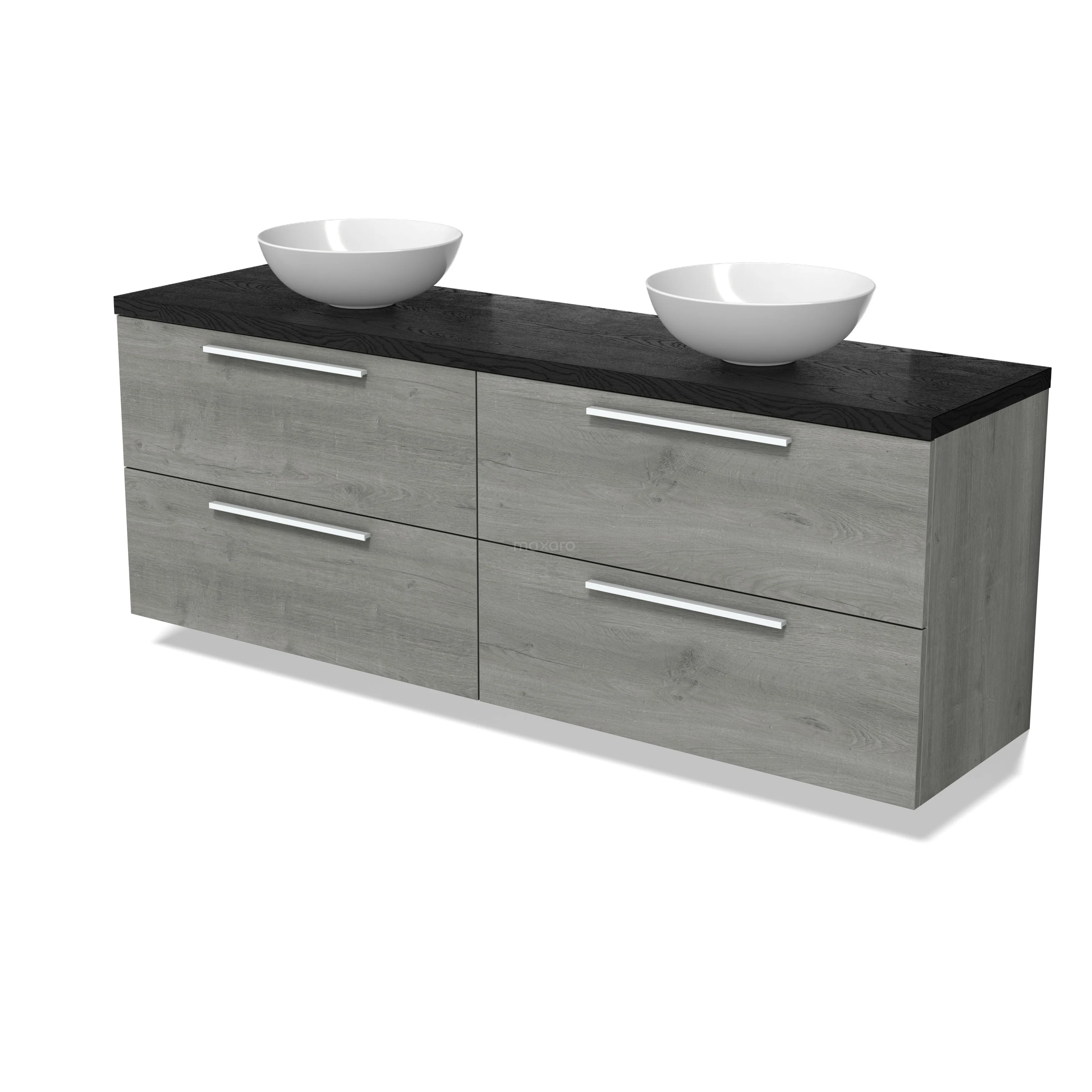 Modulo Plato Badmöbel mit Aufsatzwaschbecken | 180 cm Graue Eiche Flach front Schwarze Eiche blatt 4 Schubladen