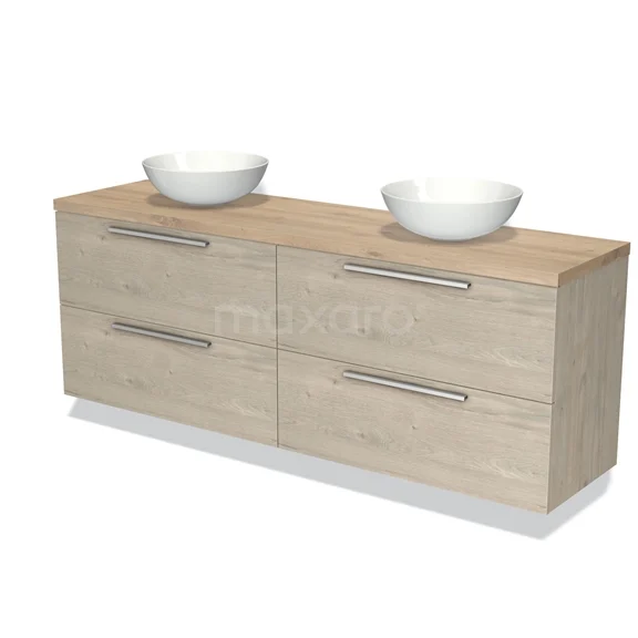 Modulo Plato Badmöbel mit Aufsatzwaschbecken | 180 cm Hellgraue Eiche Flach front Hellbraune Eiche blatt 4 Schubladen