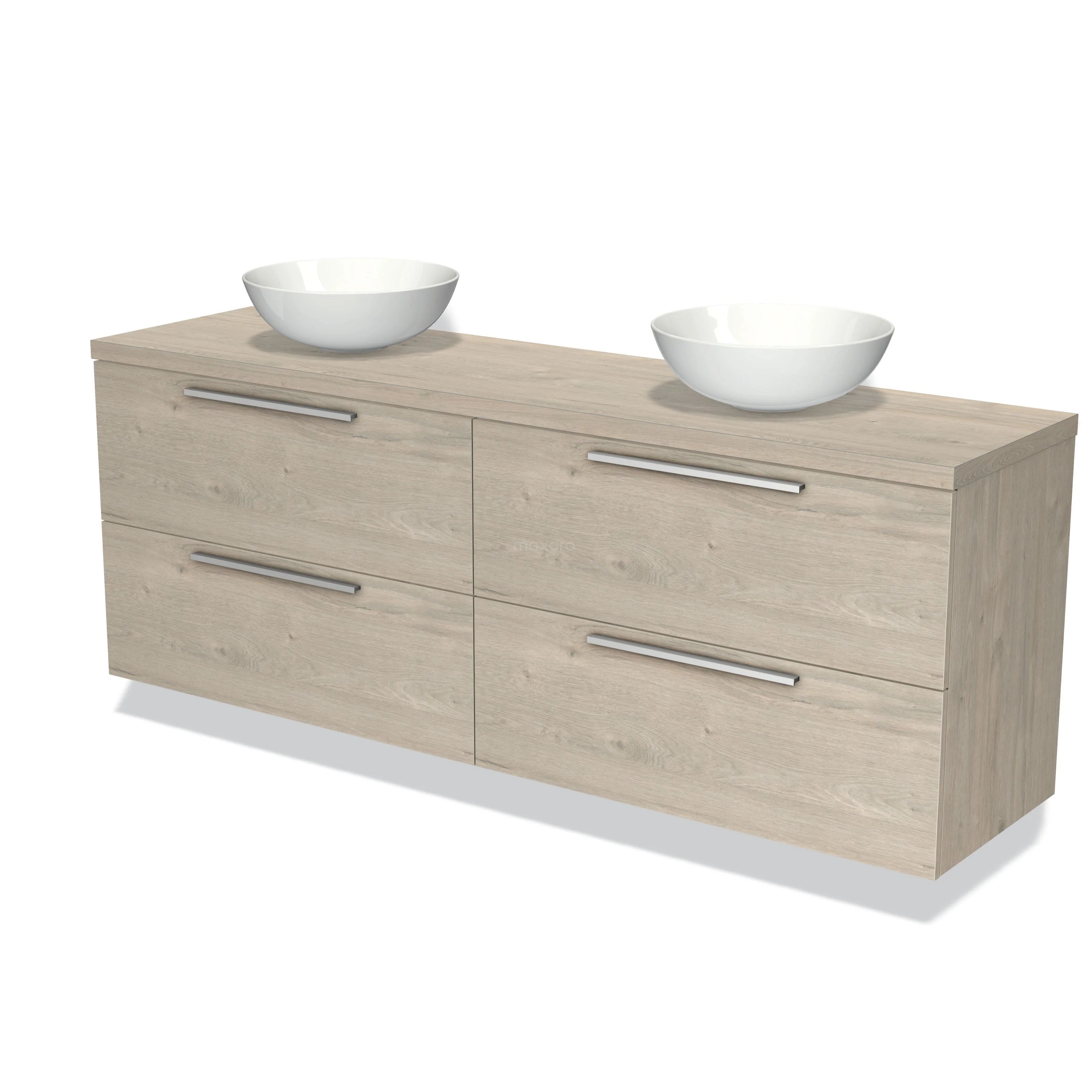 Modulo Plato Badmöbel mit Aufsatzwaschbecken | 180 cm Hellgraue Eiche Flach front Hellgraue Eiche blatt 4 Schubladen