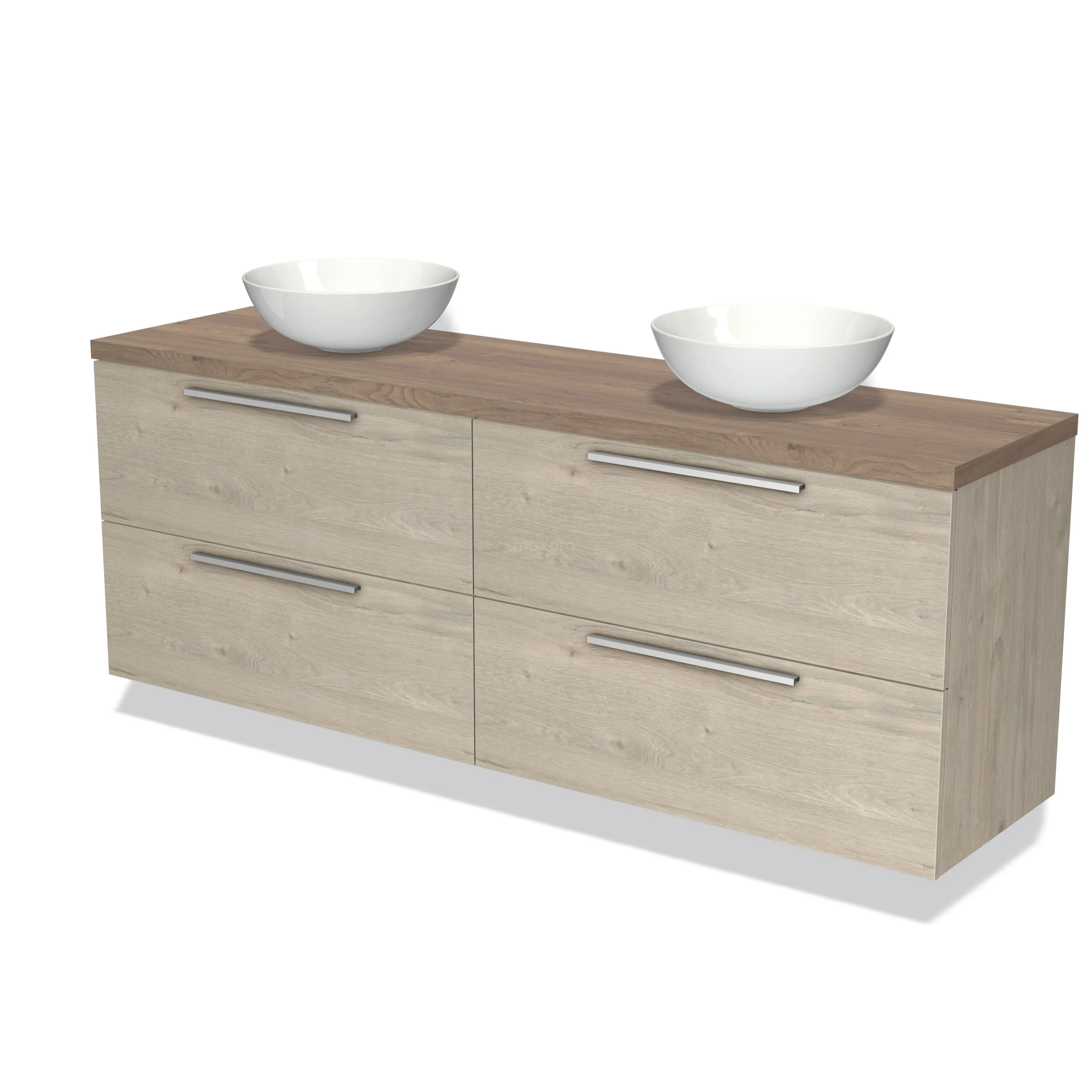 Modulo Plato Badmöbel mit Aufsatzwaschbecken | 180 cm Hellgraue Eiche Flach front Mittelbraune Eiche blatt 4 Schubladen