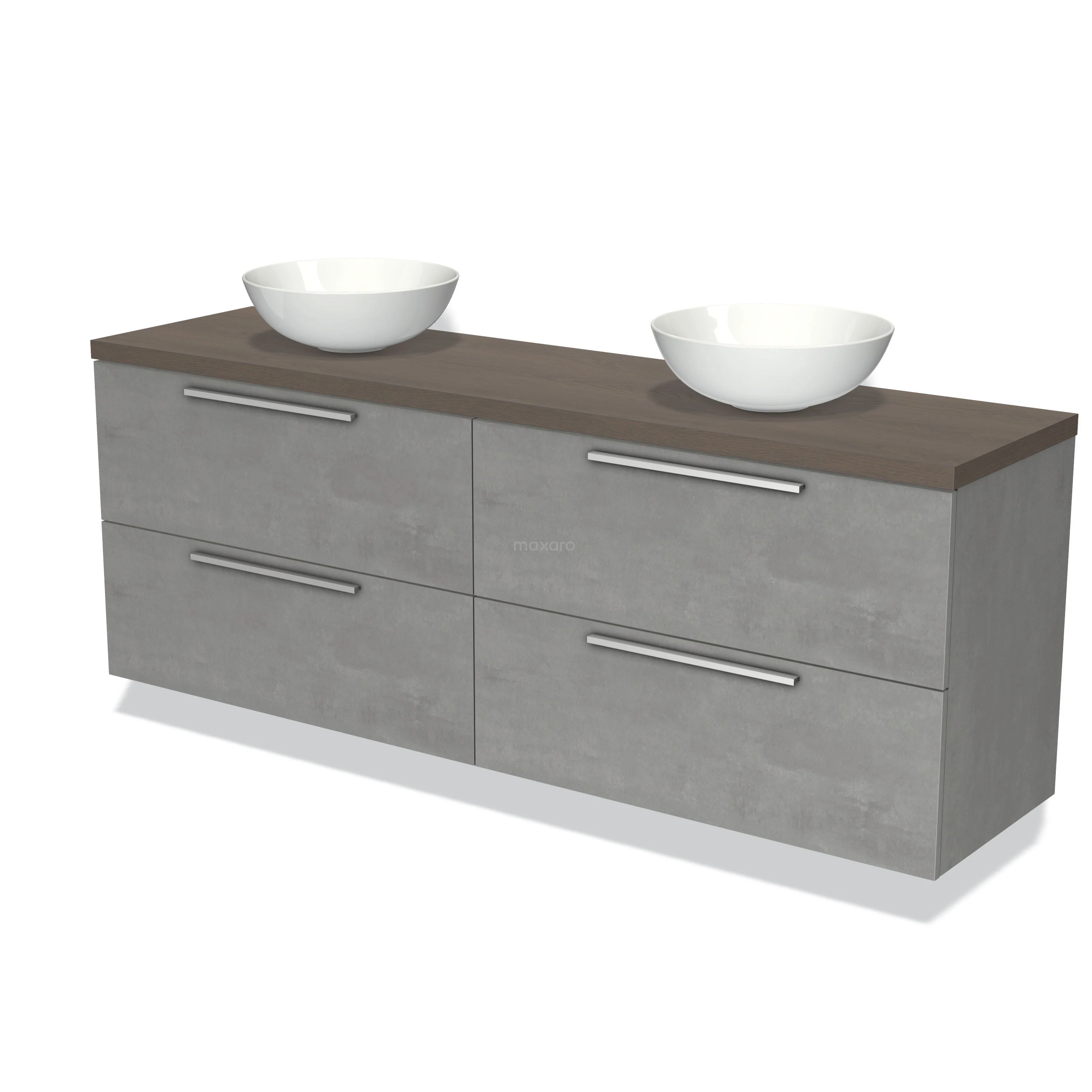Modulo Plato Badmöbel mit Aufsatzwaschbecken | 180 cm Hellgrauer Beton Flach front Dunkelbraune Eiche blatt 4 Schubladen