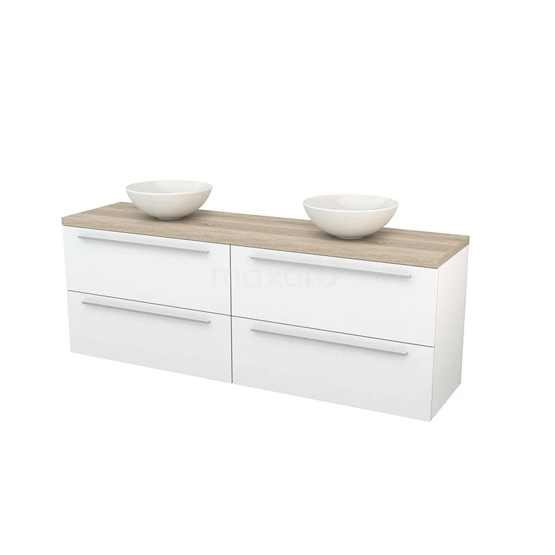 Modulo+ Plato Badmöbel mit Aufsatzwaschbecken | 180 cm Hochglanz Weiß Flach front Eiche blatt 4 Schubladen