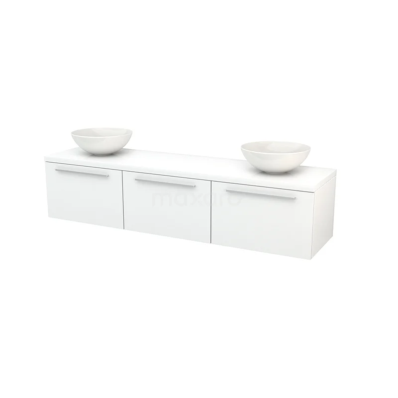 Modulo+ Plato Badmöbel mit Aufsatzwaschbecken | 180 cm Hochglanz Weiß Flach front Hochglanz Weiß blatt 3 nebeneinanderliegende Schubladen