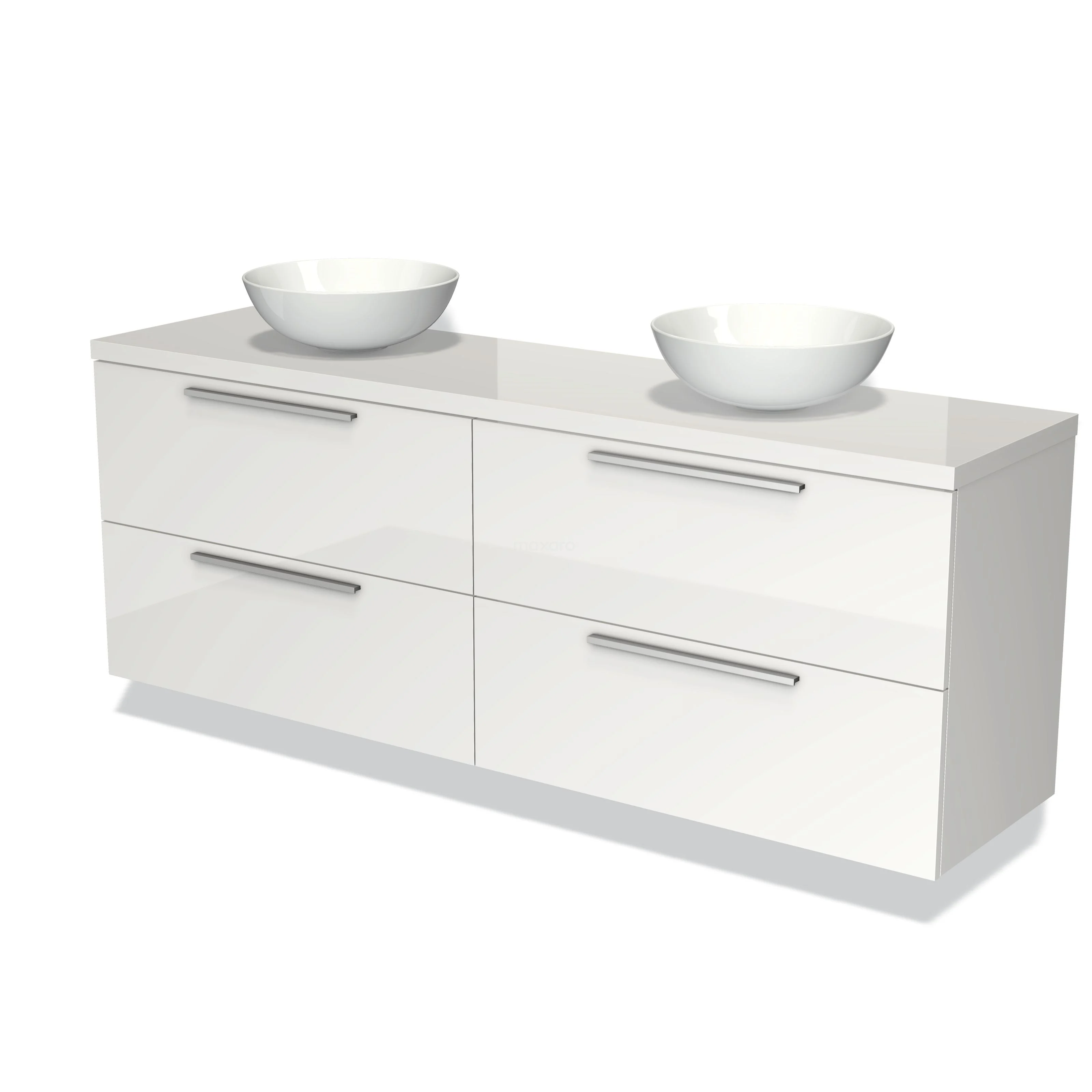 Modulo Plato Badmöbel mit Aufsatzwaschbecken | 180 cm Hochglanz Weiß Flach front Hochglanz Weiß blatt 4 Schubladen