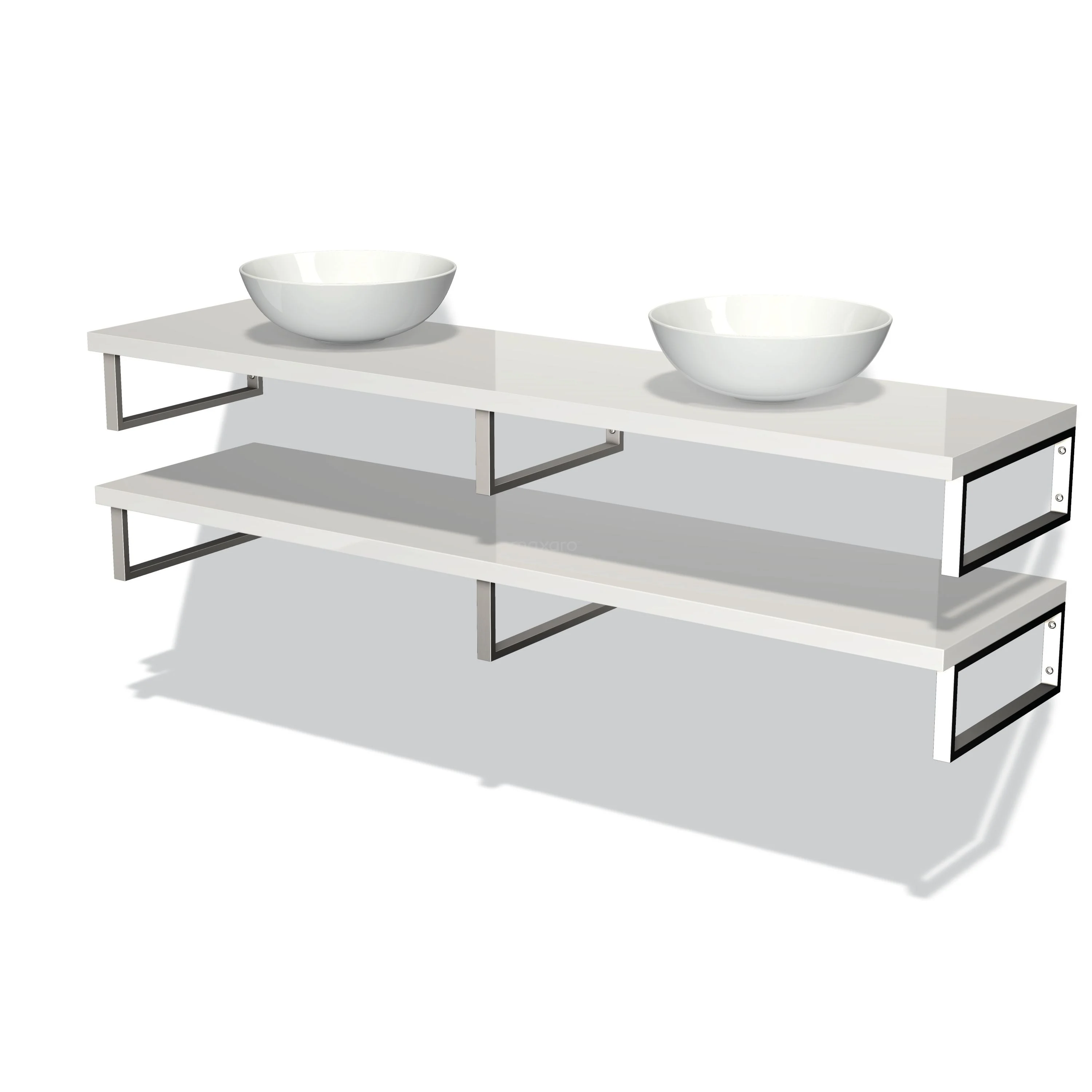 Modulo Plato Badmöbel mit Aufsatzwaschbecken | 180 cm Hochglanz Weiß front Hochglanz Weiß blatt 2 Waschtischplatten