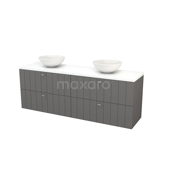 Modulo+ Plato Badmöbel mit Aufsatzwaschbecken | 180 cm Hochglanz Weiß Lamelle front Hochglanz Weiß blatt 4 Schubladen
