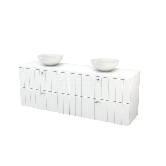 Modulo+ Plato Badmöbel mit Aufsatzwaschbecken | 180 cm Hochglanz Weiß Lamelle front Hochglanz Weiß blatt 4 Schubladen