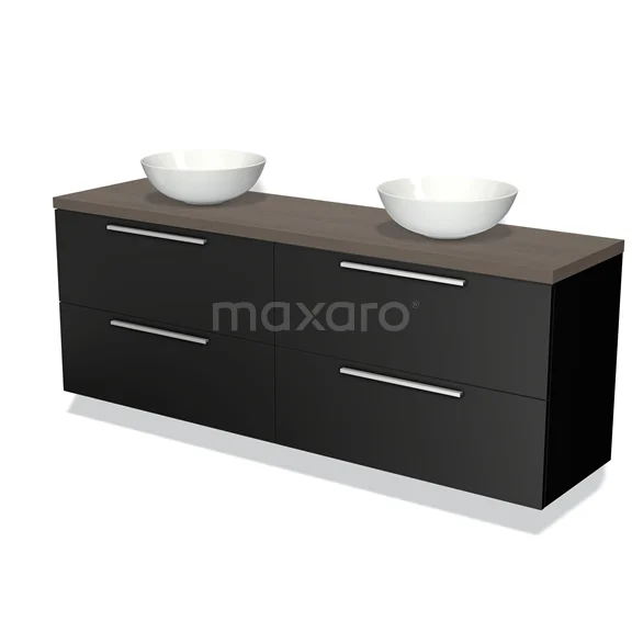 Modulo Plato Badmöbel mit Aufsatzwaschbecken | 180 cm Matt Schwarz Flach front Dunkelbraune Eiche blatt 4 Schubladen