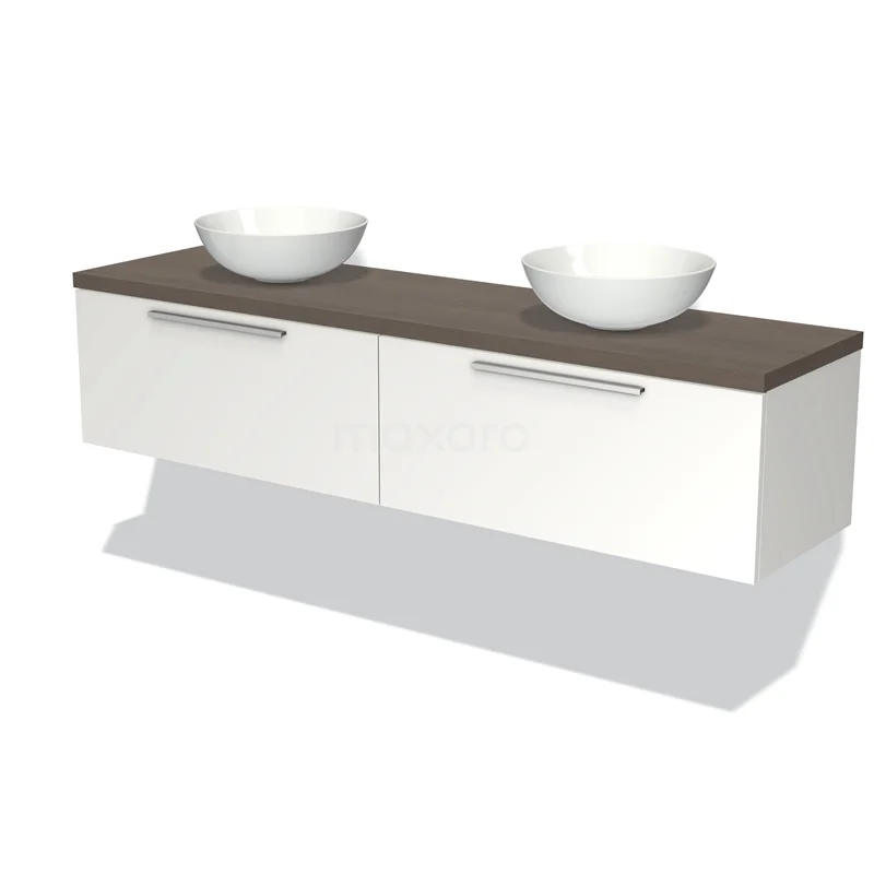 Modulo Plato Badmöbel mit Aufsatzwaschbecken | 180 cm Matt Weiß Flach front Dunkelbraune Eiche blatt 2 nebeneinanderliegende Schubladen