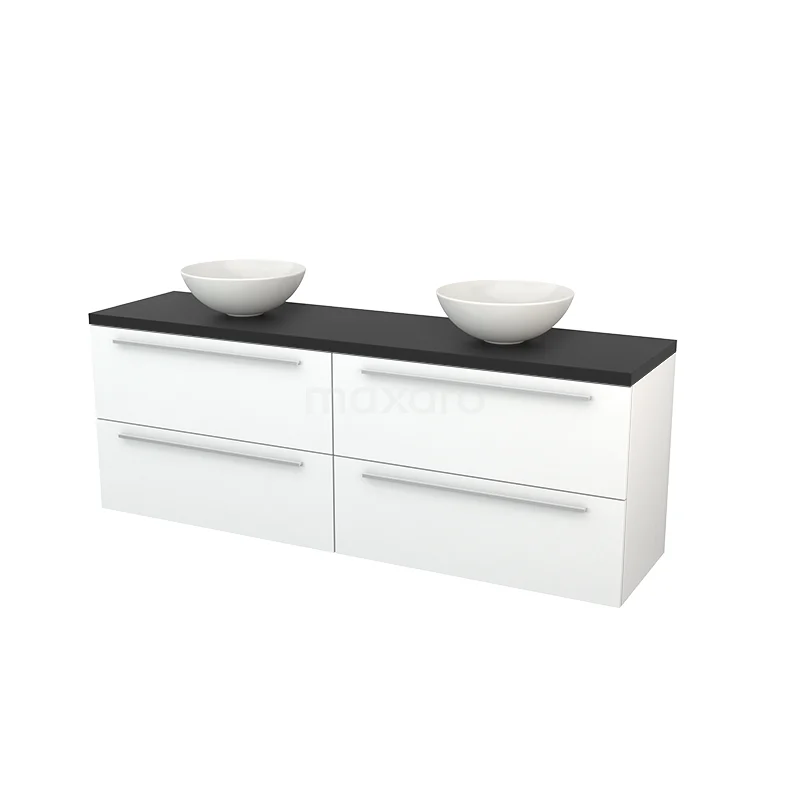 Modulo+ Plato Badmöbel mit Aufsatzwaschbecken | 180 cm Matt Weiß Flach front Kohlenstoff blatt 4 Schubladen