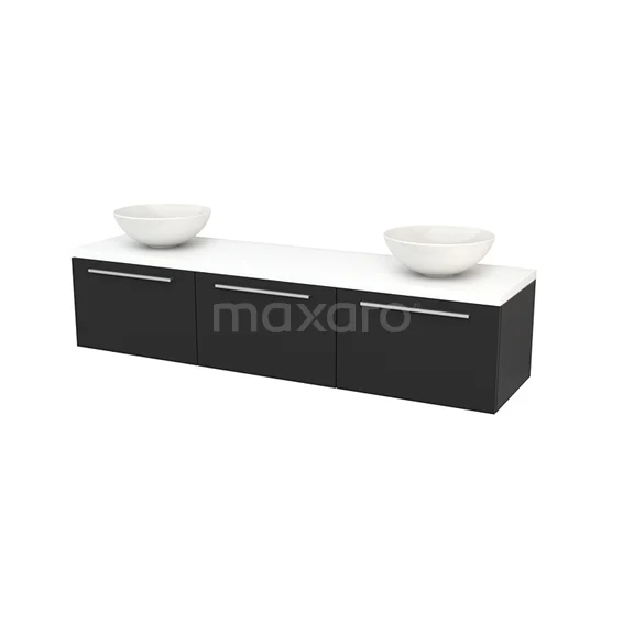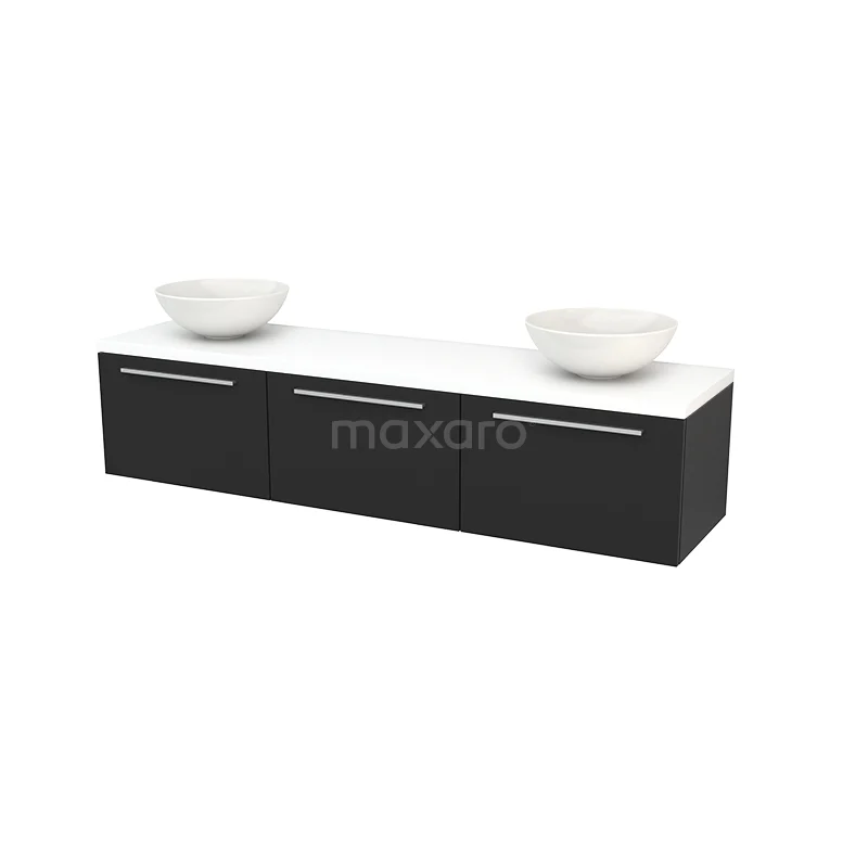 Modulo+ Plato Badmöbel mit Aufsatzwaschbecken | 180 cm Matt Weiß Flach front Matt Weiß blatt 3 nebeneinanderliegende Schubladen