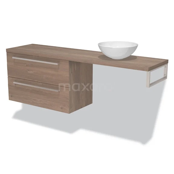Modulo Plato Badmöbel mit Aufsatzwaschbecken | 180 cm Mittelbraune Eiche Flach front Mittelbraune Eiche blatt 2 übereinanderliegende Schubladen