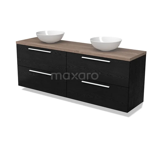 Modulo Plato Badmöbel mit Aufsatzwaschbecken | 180 cm Schwarze Eiche Flach front Mittelbraune Eiche blatt 4 Schubladen