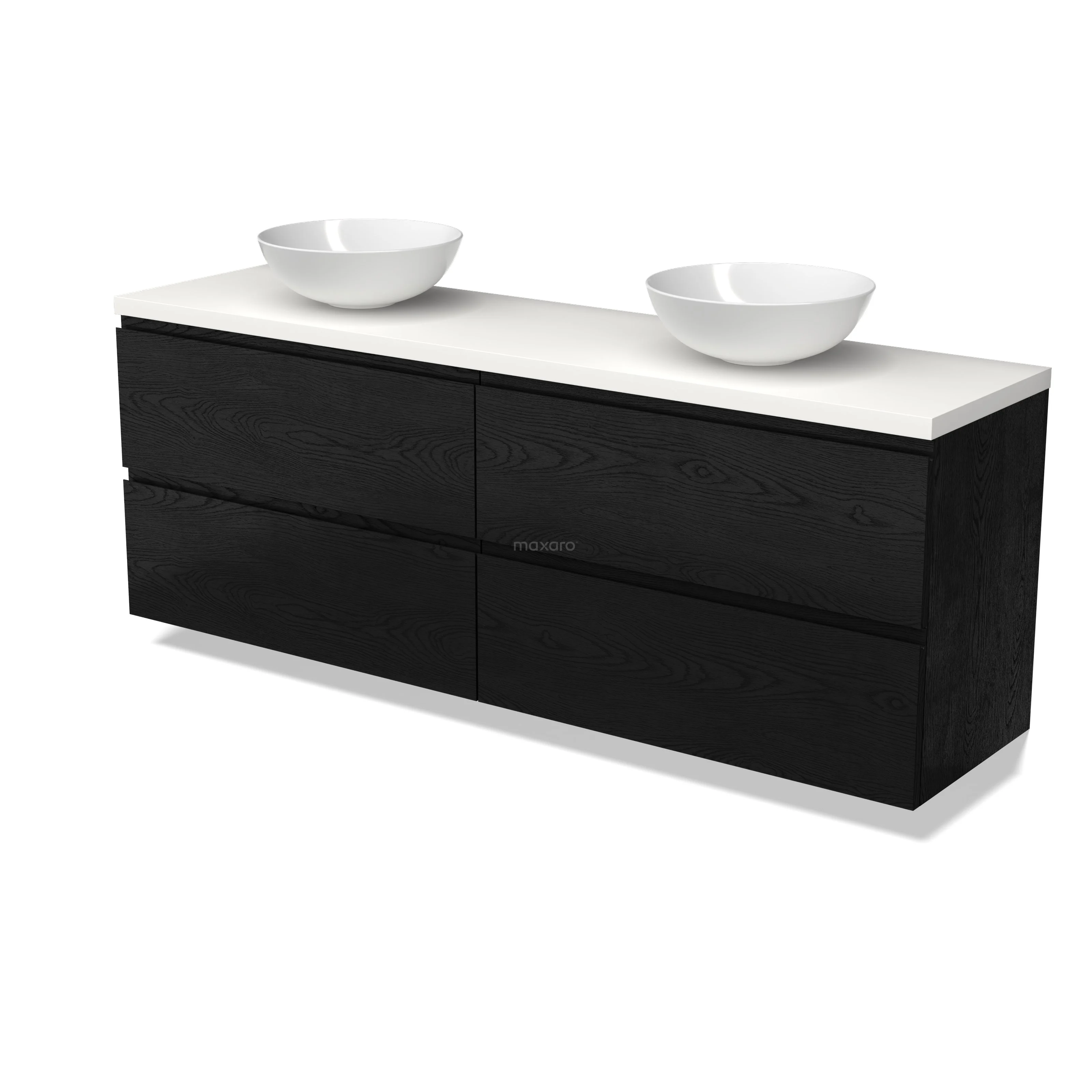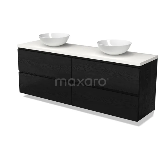 Modulo Plato Badmöbel mit Aufsatzwaschbecken | 180 cm Schwarze Eiche Grifflos front Matt Weiß blatt 4 Schubladen