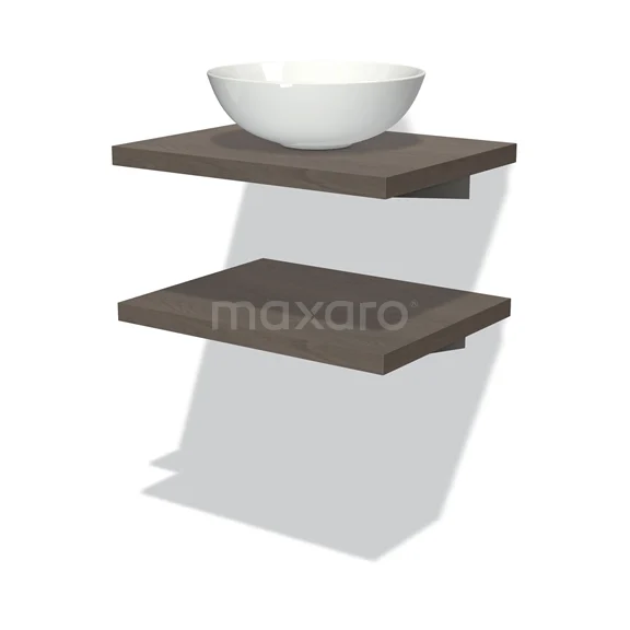 Modulo Plato Badmöbel mit Aufsatzwaschbecken | 60 cm Dunkelbraune Eiche front Dunkelbraune Eiche blatt 2 Waschtischplatten