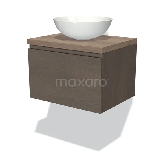 Modulo Plato Badmöbel mit Aufsatzwaschbecken | 60 cm Dunkelbraune Eiche Grifflos front Mittelbraune Eiche blatt 1 Schublade