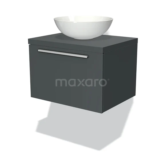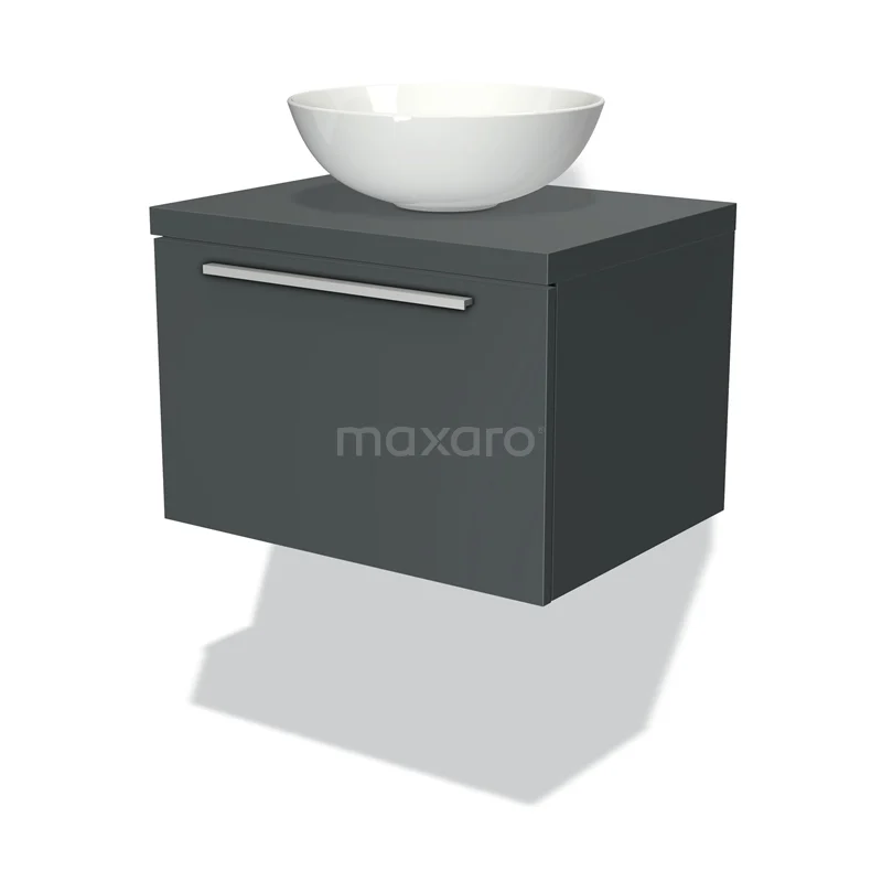 Modulo Plato Badmöbel mit Aufsatzwaschbecken | 60 cm Dunkelgrau Flach front Dunkelgrau blatt 1 Schublade