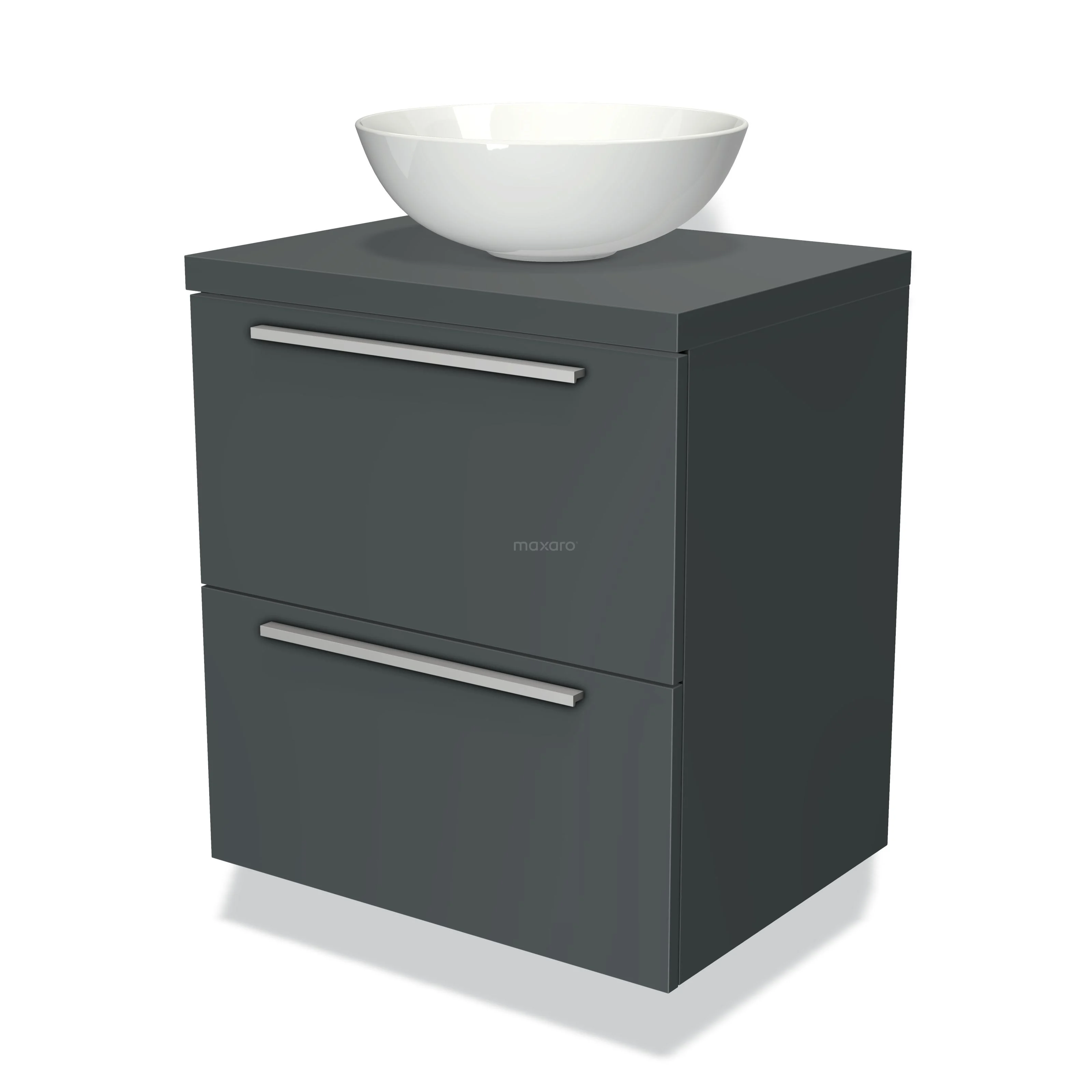 Modulo Plato Badmöbel mit Aufsatzwaschbecken | 60 cm Dunkelgrau Flach front Dunkelgrau blatt 2 übereinanderliegende Schubladen