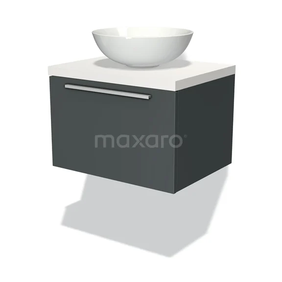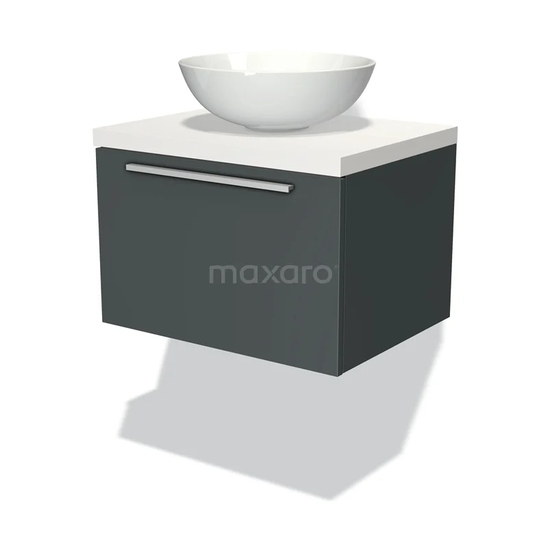 Modulo Plato Badmöbel mit Aufsatzwaschbecken | 60 cm Dunkelgrau Flach front Matt Weiß blatt 1 Schublade